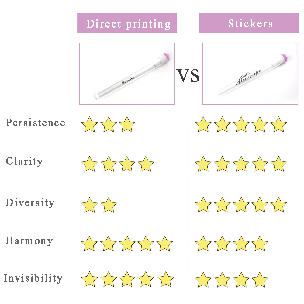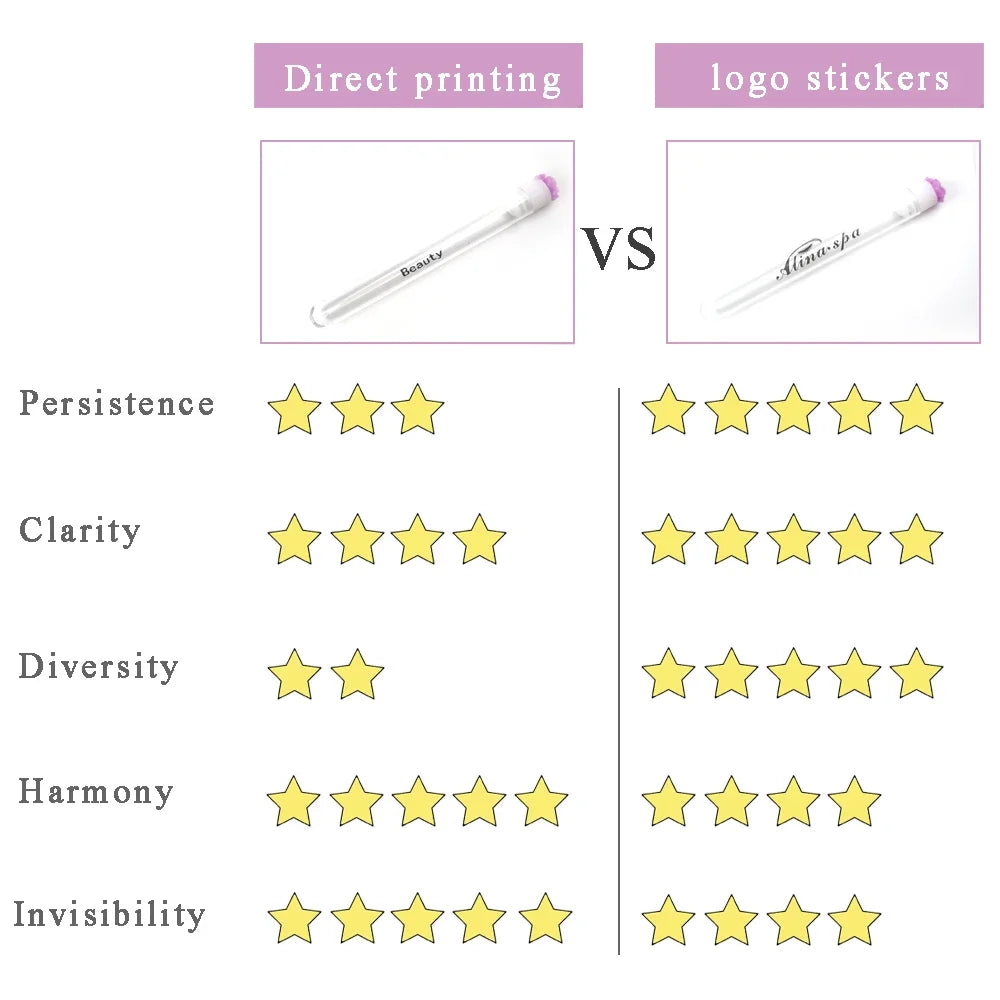 There are two ways to order: direct printing and logo sticker. Direct printing can only print simple letters on the test tube; stickers can print complex patterns, but the stickers will have subtle sticker marks on the test tubes. Please place an order according to your own needs. If the pattern is complicated, please communicate with the customer service, and we will make a rendering for you.