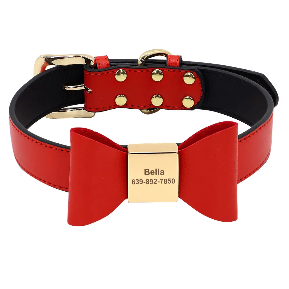 Cute Bowknot Custom Dog Collar PU Leather Puppy Dog Collars Adjustable Pet Cat Necklace With Bow tie for Small Medium Large Dogs