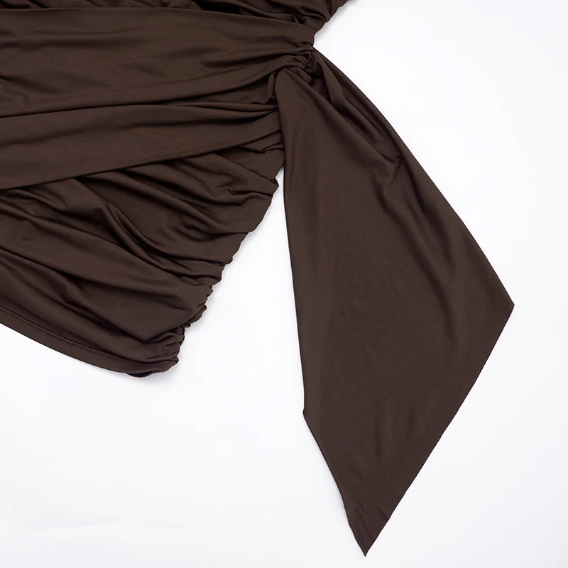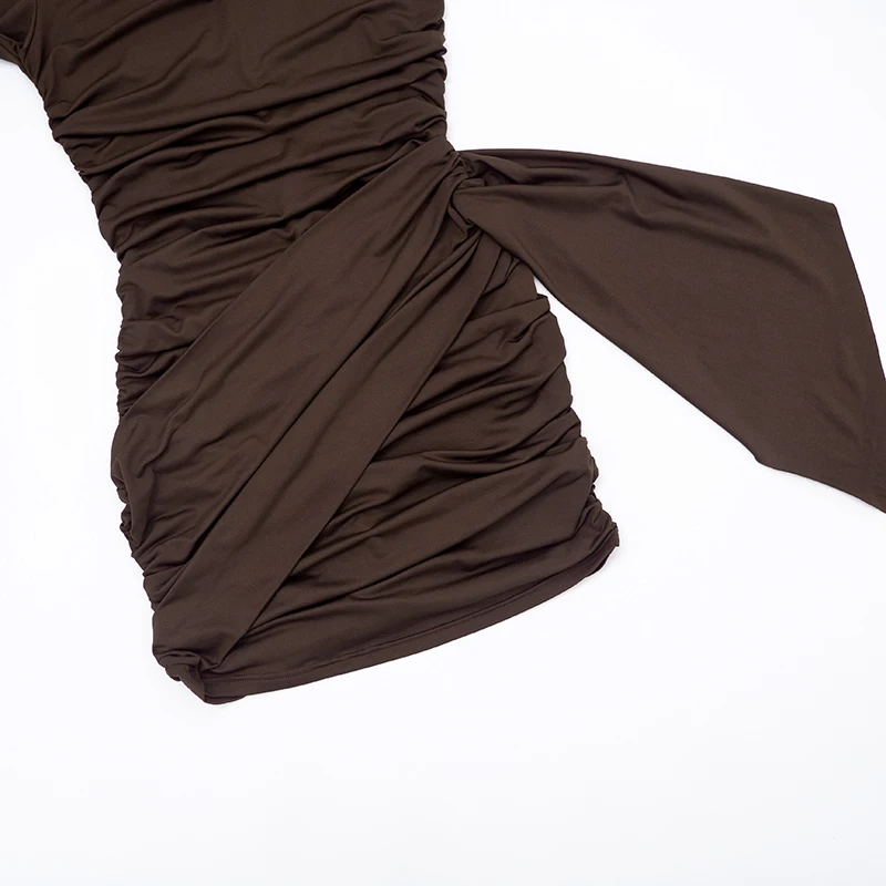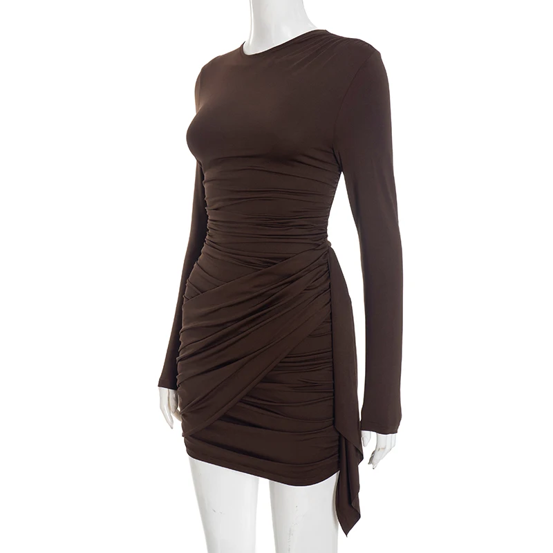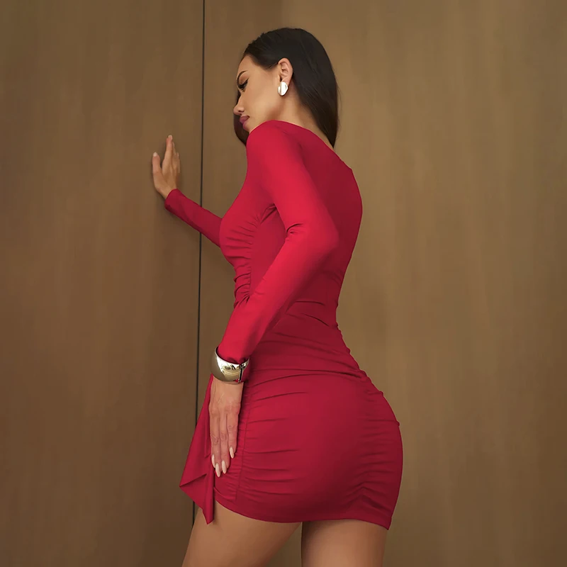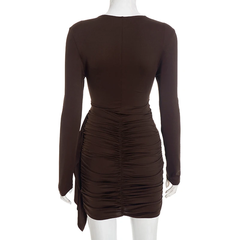 CUTENOVA Women'S Fall/Winter New Arrival Sexy Solid-Color Bodycon Gathered Ribbon Long-Sleeve Bodycon Chic Streetwear Dress
