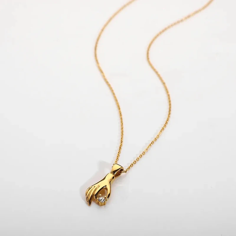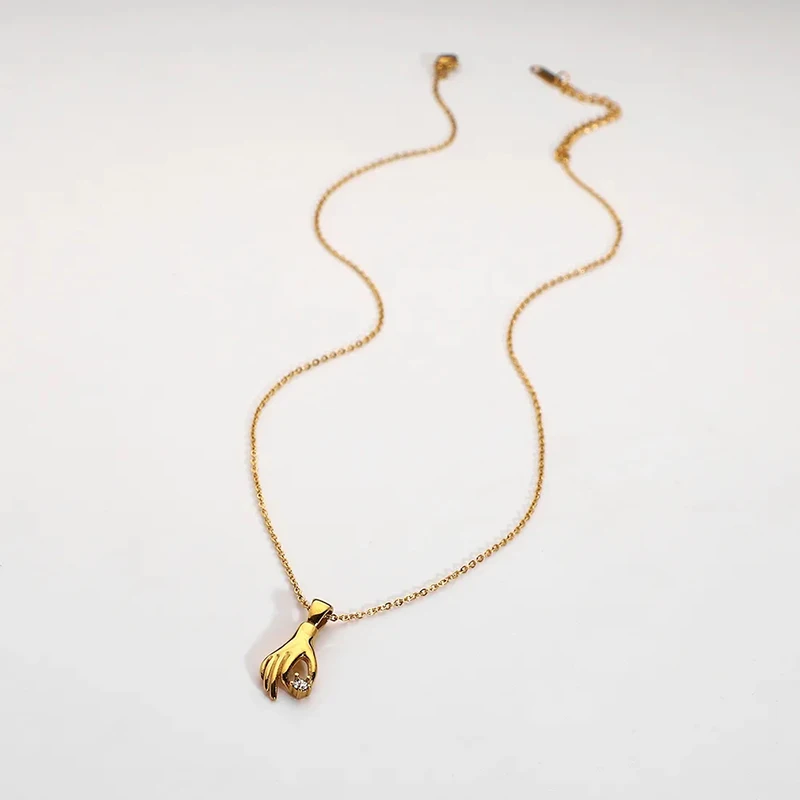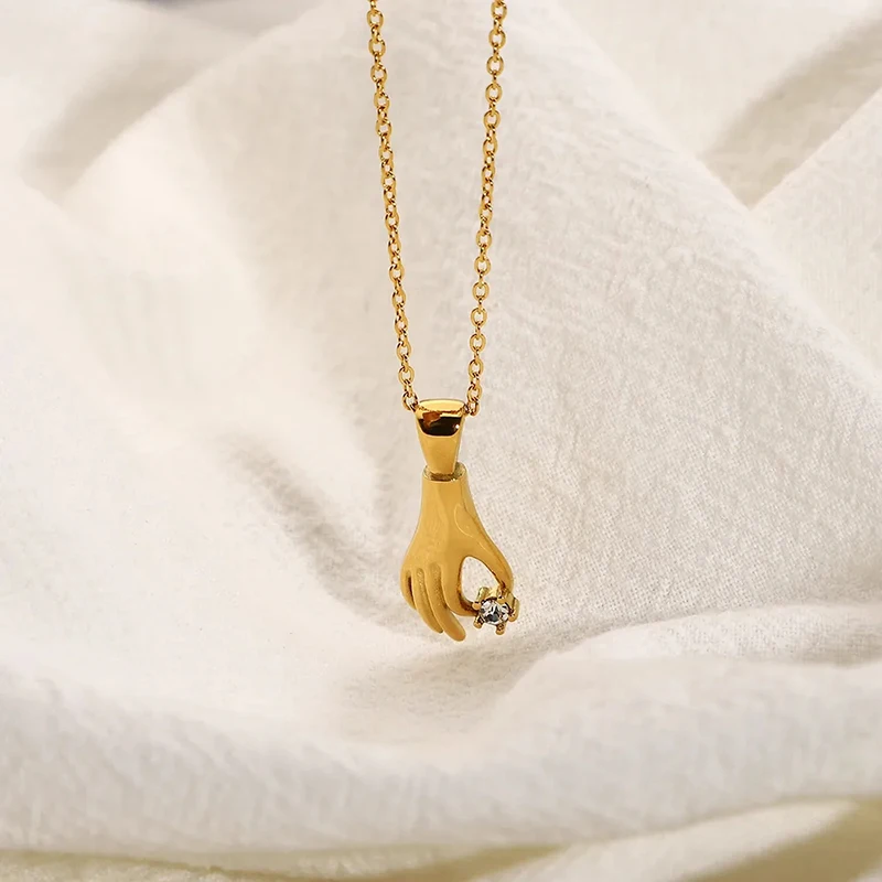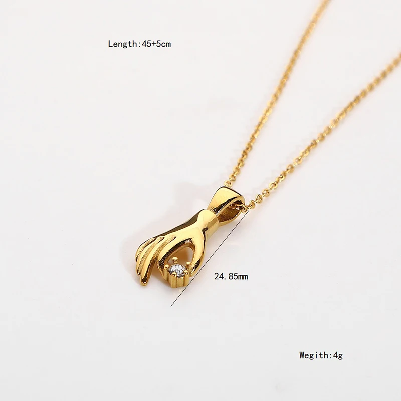 Dancy Fairy Stainless Steel Shiny Stone Abstract Palm Pendant Necklace for Women 18K Gold Color Hand Pick Star Charm Necklace
