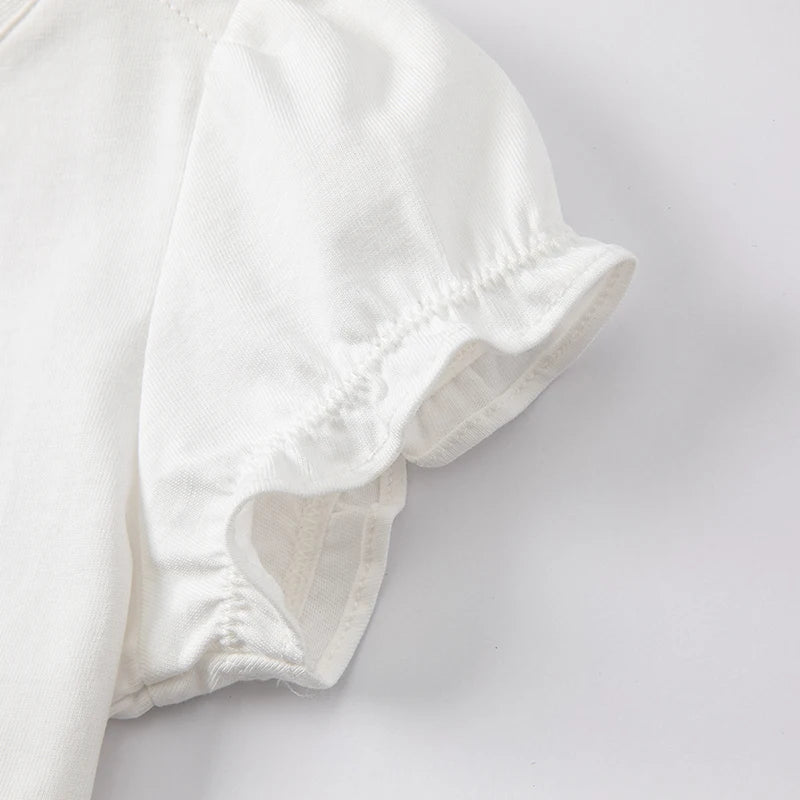 Dave Bella Baby Girl White T-shirts Cartoon Printed Girls Tees Children Tops Puff Sleeves Kids Clothes DB2221905