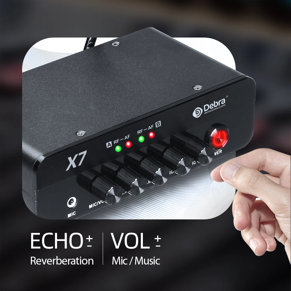 Debra X7 Karaoke 2 Channel Wireless Microphone System, 5.0 Bluetooth, DSP Reverb, Fiber Optic Interface For Karaoke And Church