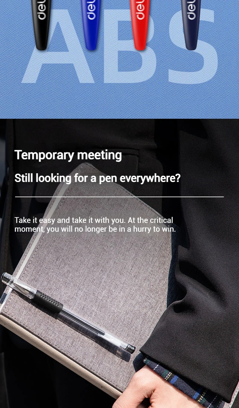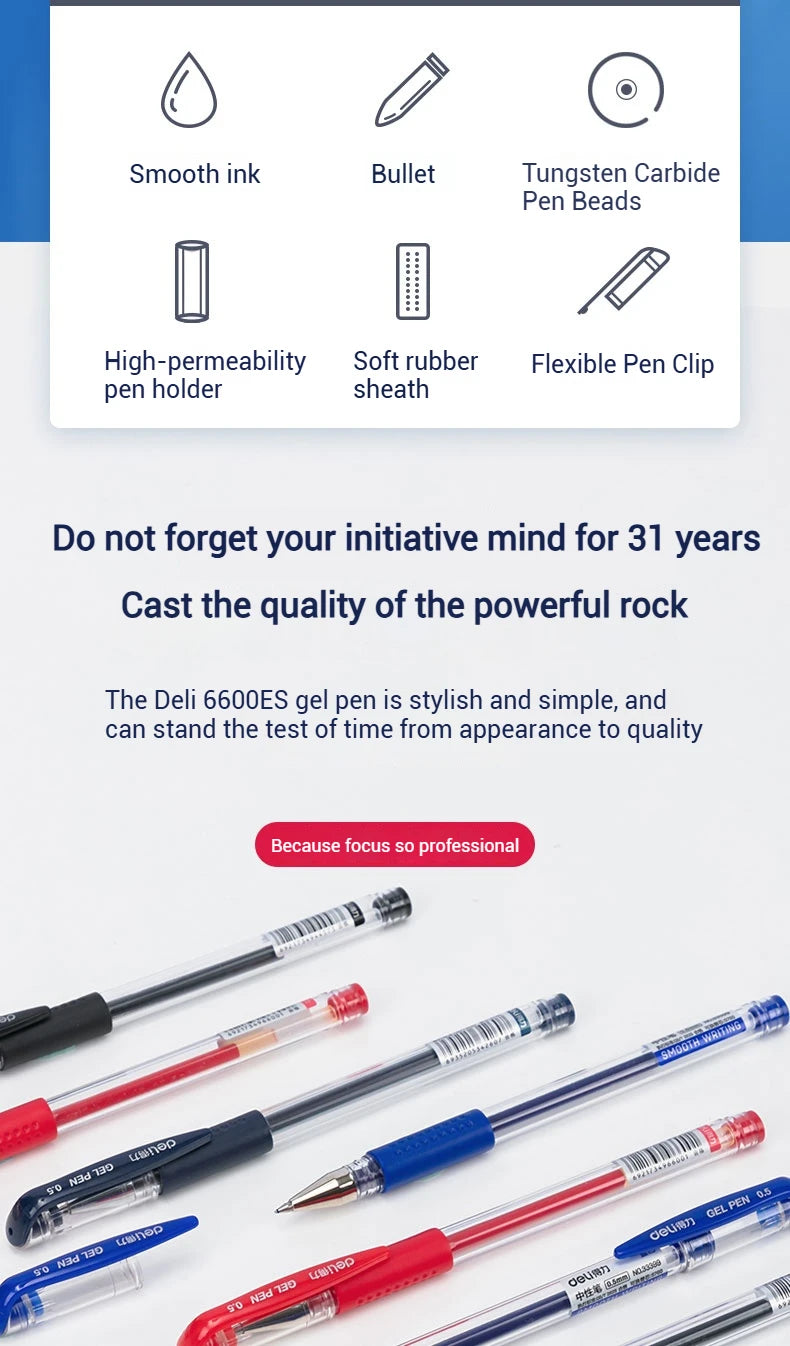 Deli 12-Pack Gel Pen Set 0.5mm Ballpoint Black Blue Red Ink Colors Writing Tools for School Office Stationery Supplies