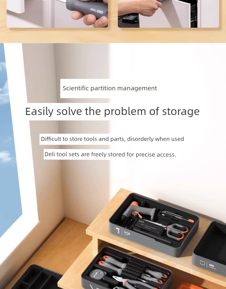 Deli Home Daily For Home Wire Cutter Hammer Lithium Electric Drill Emergency Repair Multifunctional Suit Tool H1001