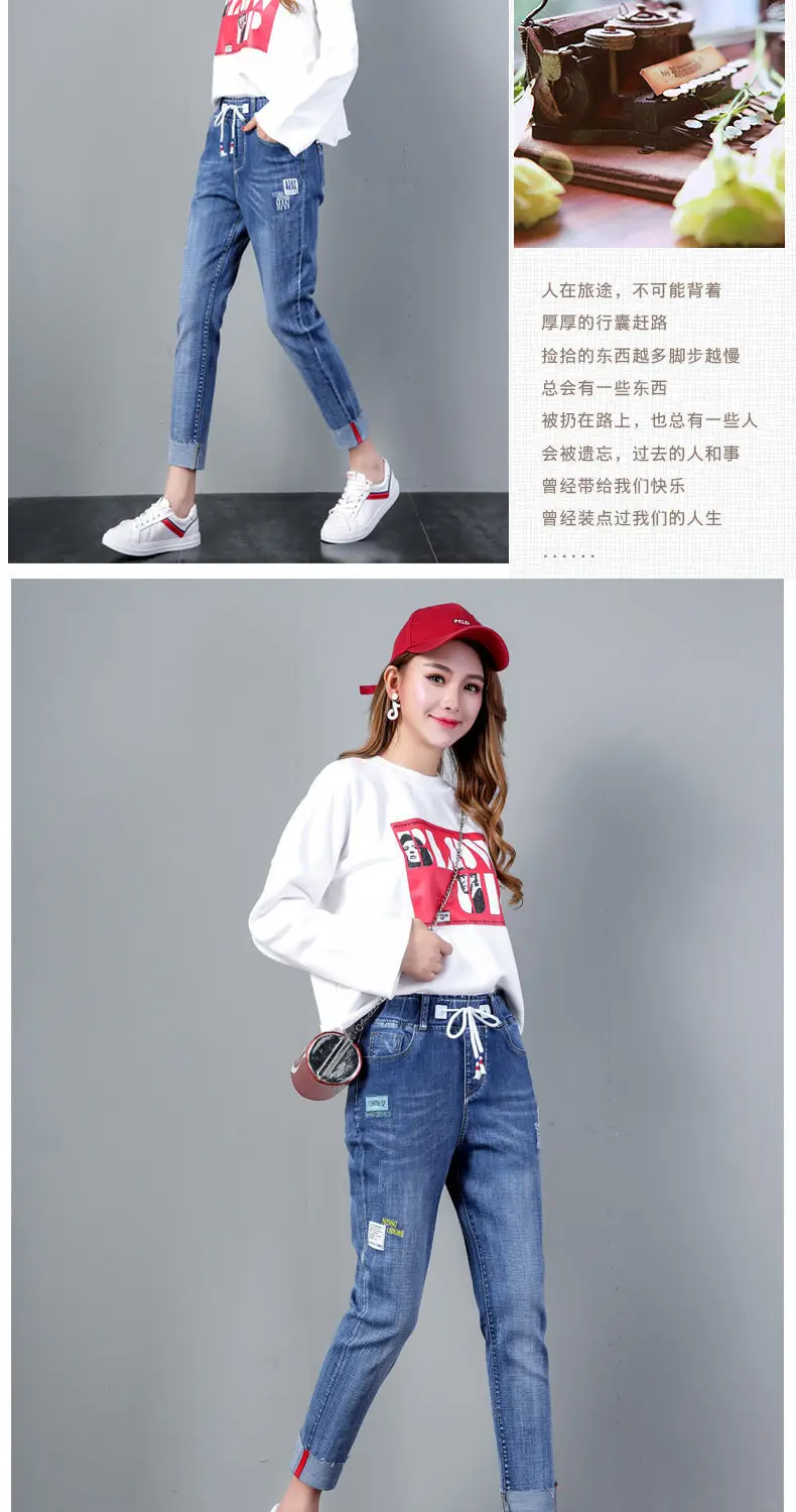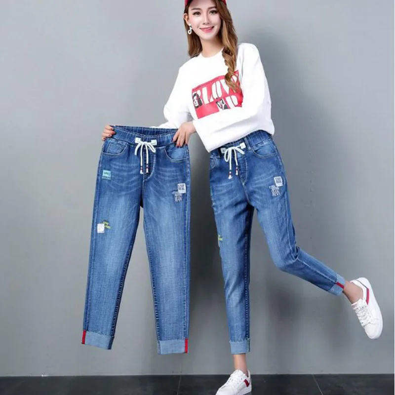 Denim Pants Korean 2024 New Spring And Summer Loose Elastic High Waist Elastic Slim Students Nine Plus Size Harlan Jeans