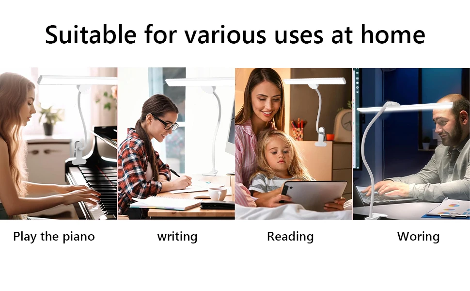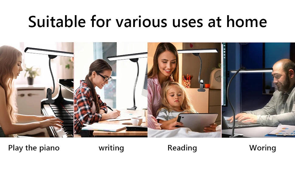 ❤️【30 light modes desk lamp clampable】The LED desk lamp work light table can easily switch between 10 brightness and 3 colour temperatures (3000K-6000K) with buttons and offers you healthy and comfortable office lighting. Different lights meet the needs of different scenes, suitable for you and your children for reading, working, learning, relaxing.