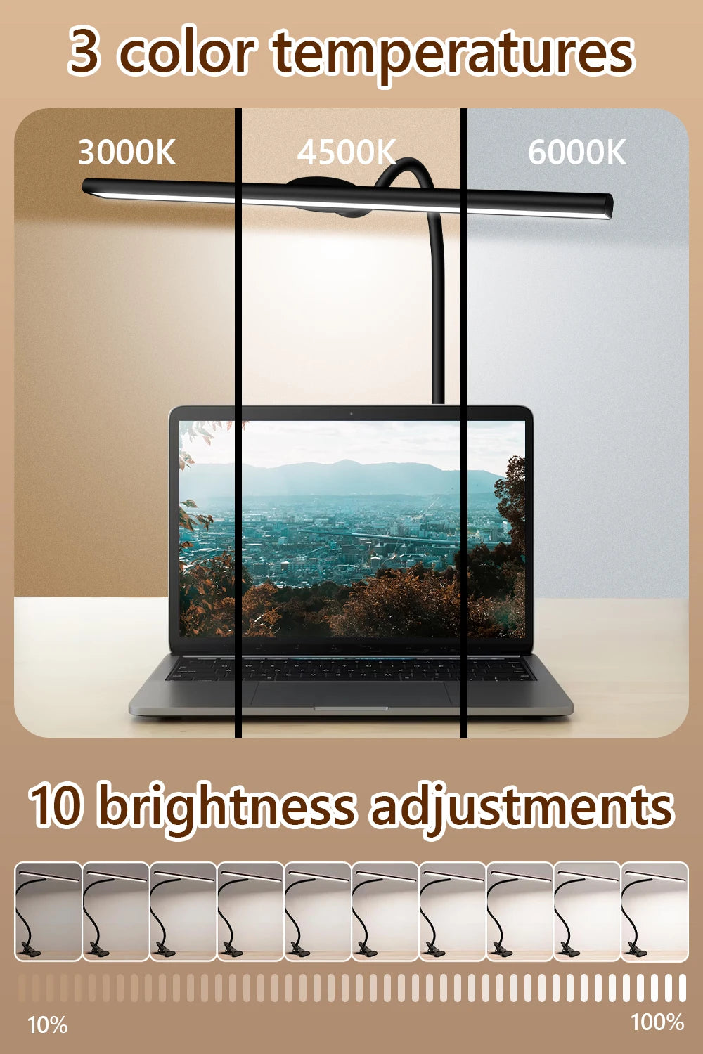 Desk Lamp LED Dimmable 10W 40CM Desk Lamp Clampable Eye Protection Clamp Light 3 Colour Temperature10 Brightness
