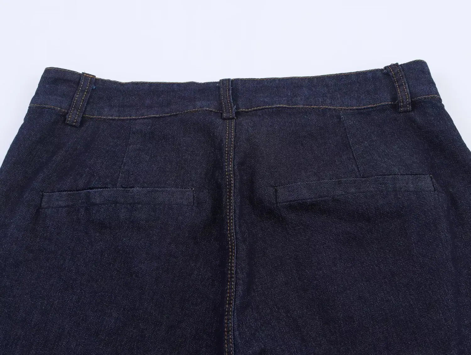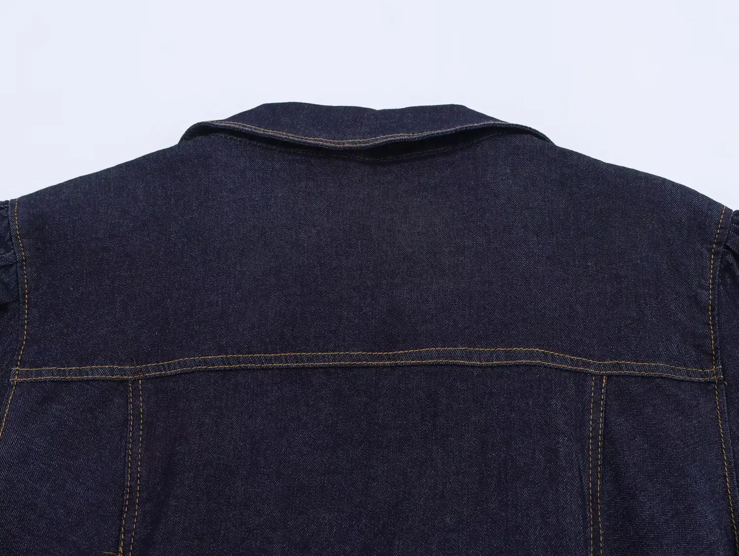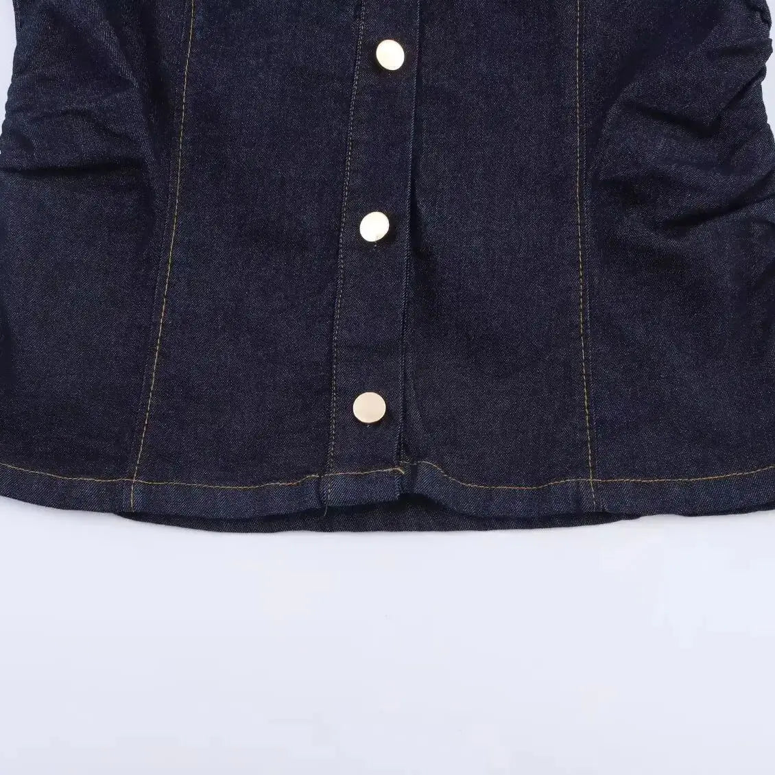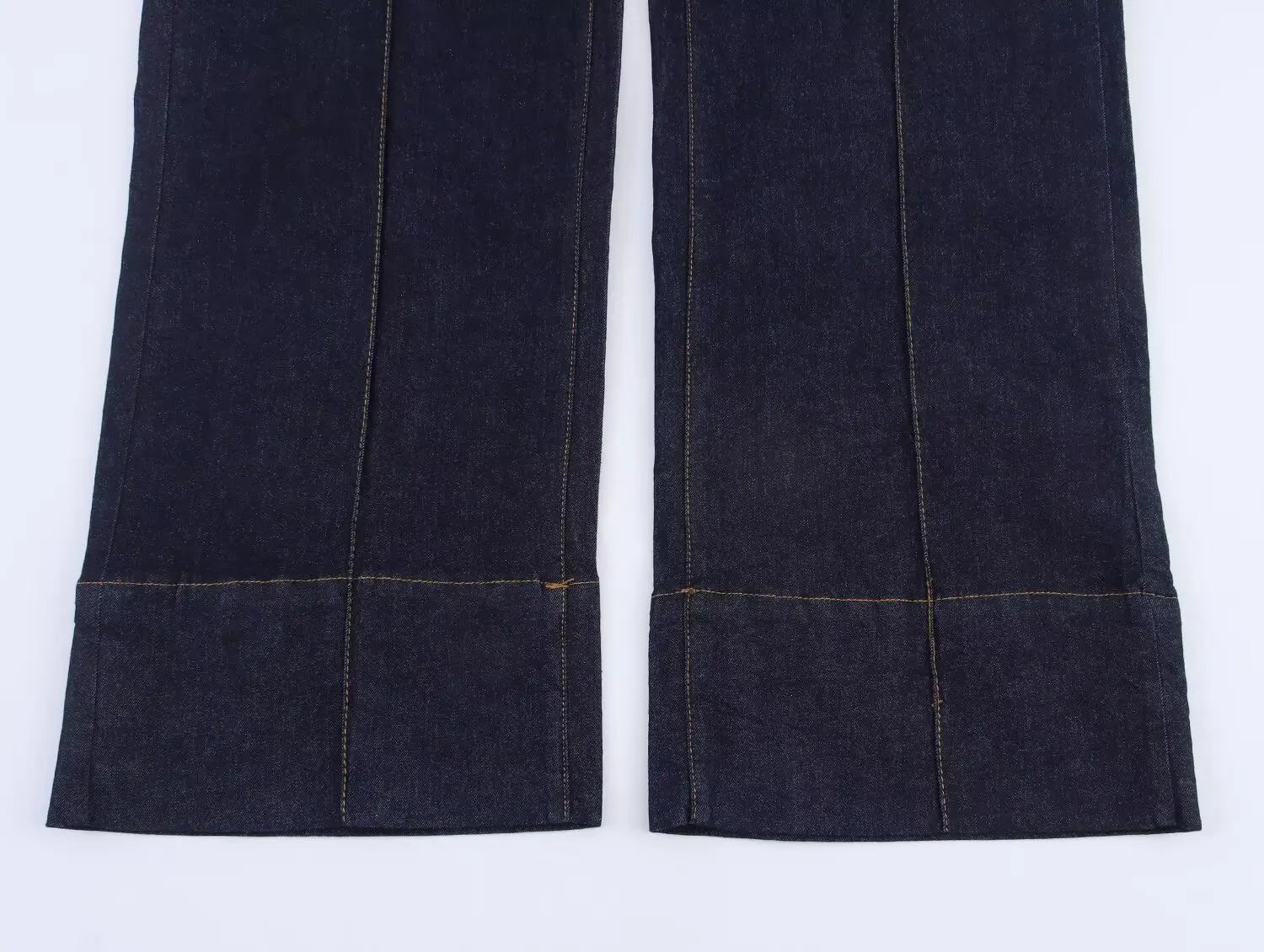 DiYiG Women 2025 Autumn New Fashion Slim Fit Denim Bubble Sleeve Buckle Shirt Zipper Wide Leg Pants Blouses Mujer