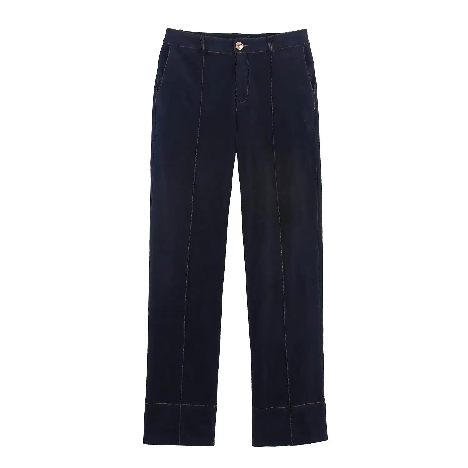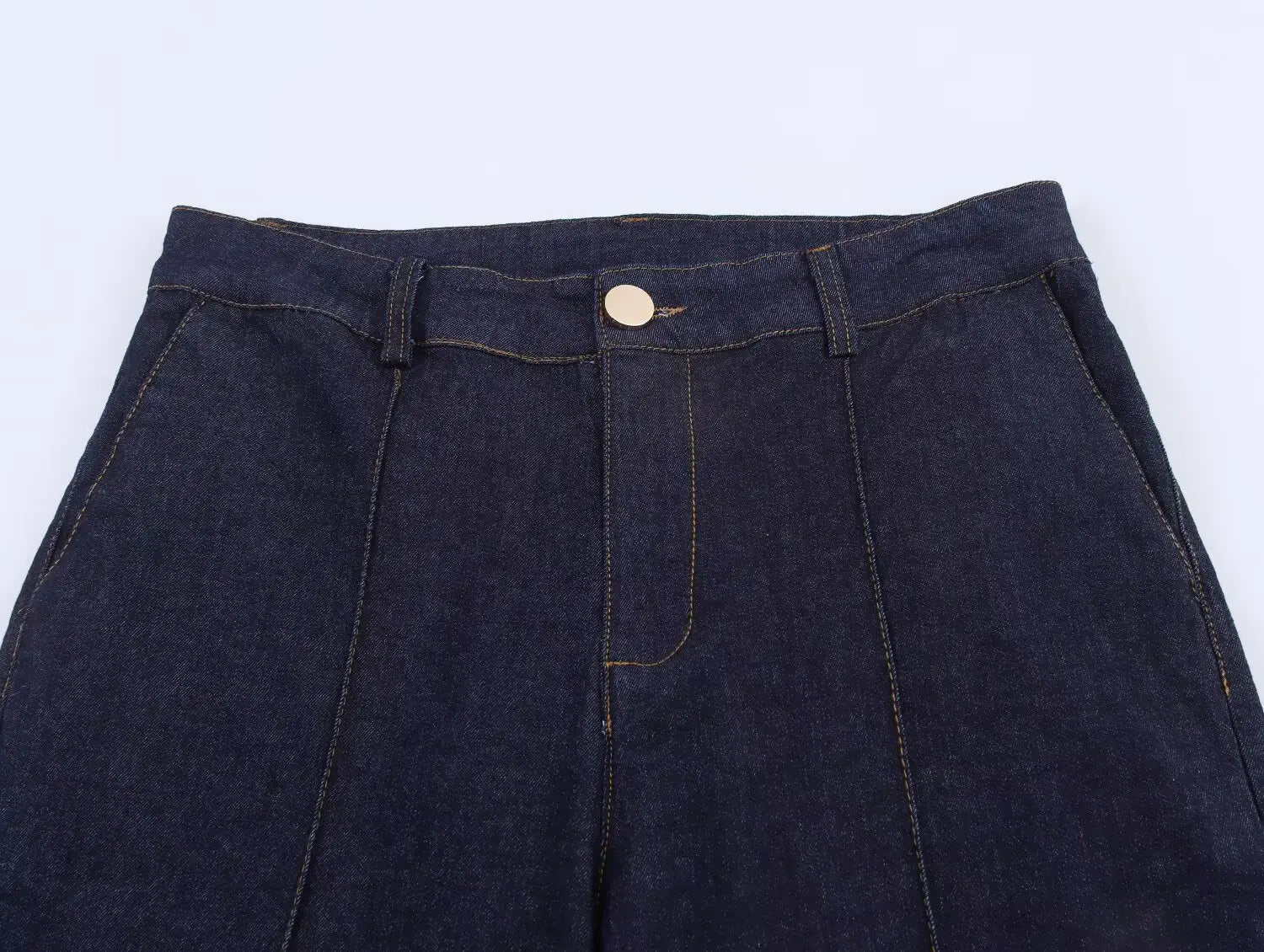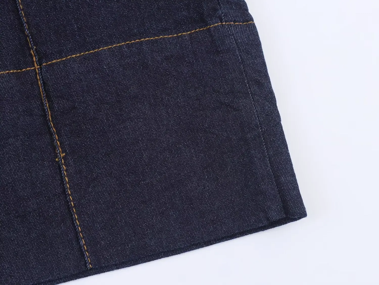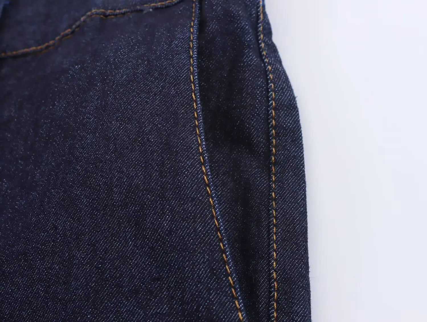 DiYiG Women 2025 Autumn New Fashion Slim Fit Denim Bubble Sleeve Buckle Shirt Zipper Wide Leg Pants Blouses Mujer