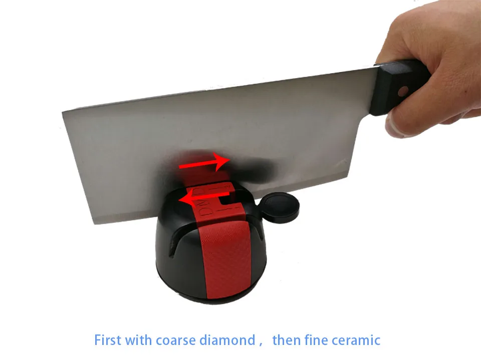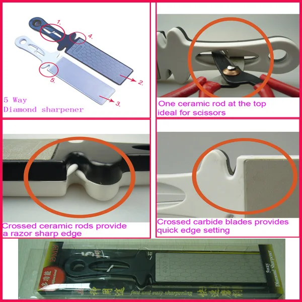 Diamond five uses multi-function knife grinder, combining coarse grinding with fine grinding. The design of Polishing stainless steel with fine grinding first highlights the texture of the product. It is suitable for grinding cutting tools in home kitchen.