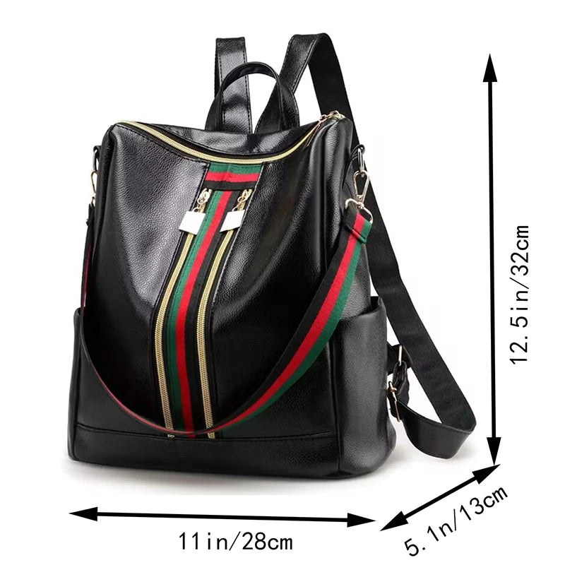 Double shoulder bag, large capacity dual-purpose women's bag, fashionable striped color contrast Korean-style women's backpack