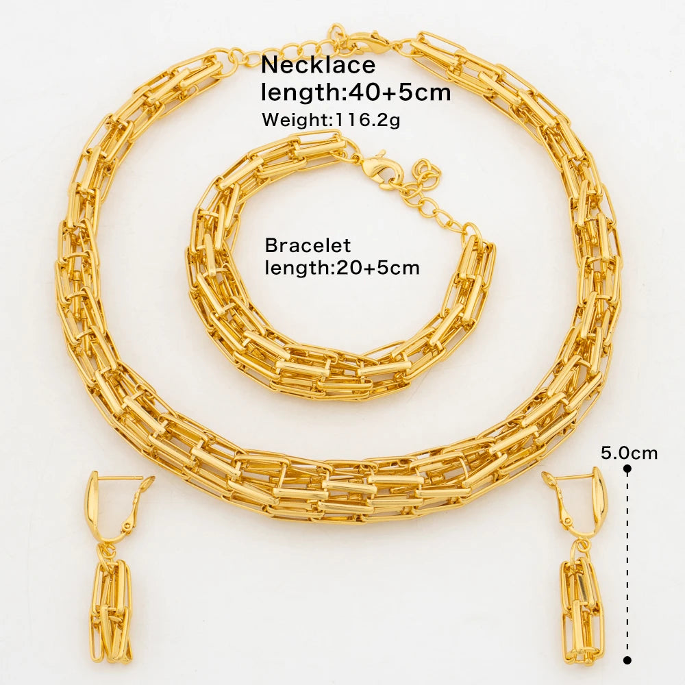 Dubai Jewelry Set Women Fashion Color Thick Necklace African Earrings Bracelet Ring Bride Banquet Wedding Party Jewelry