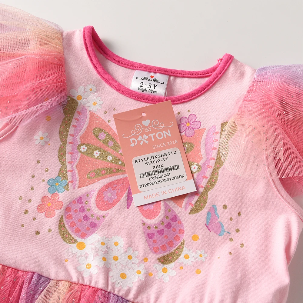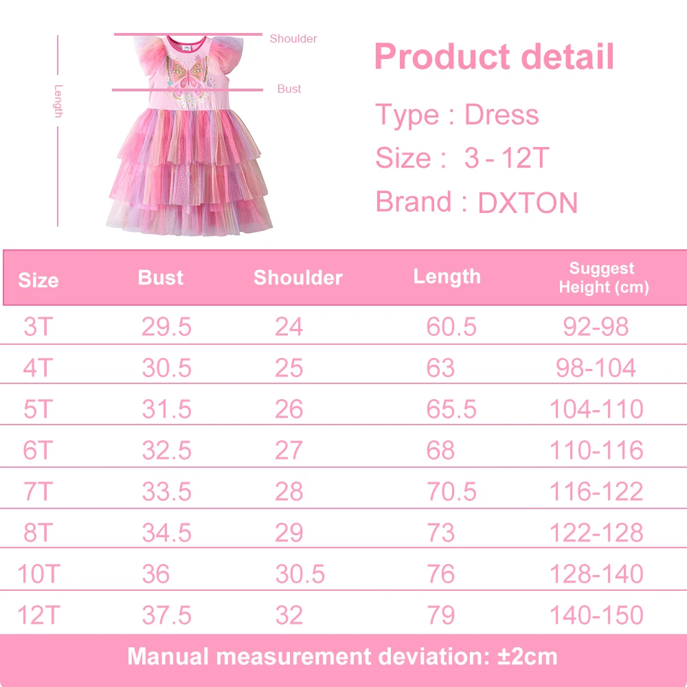 DXTON Girls Princess Dress Ruffles Sleeveless Butterfly Kids Vacation Dress Gradient Mesh Layered Cake Children Birthday Clothes