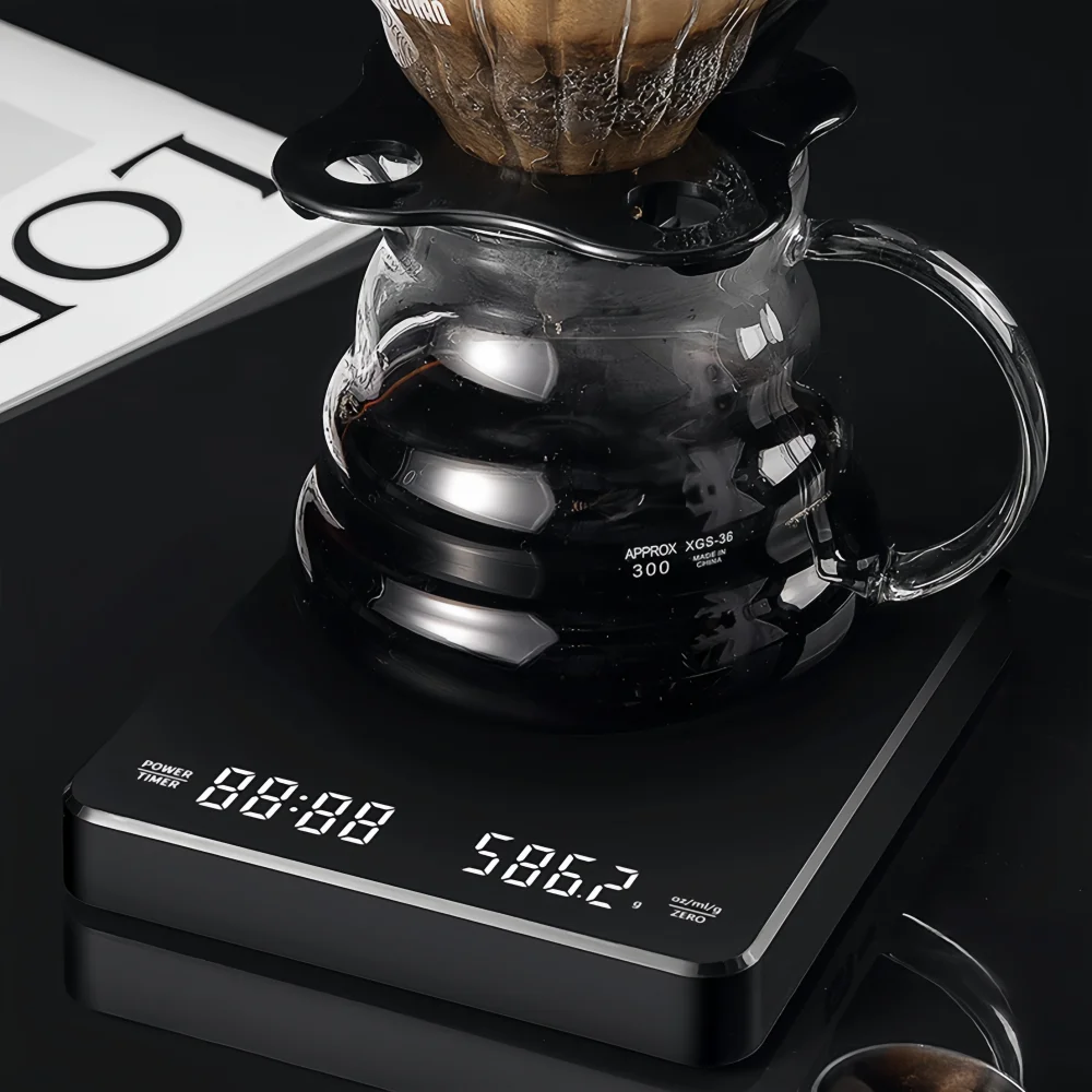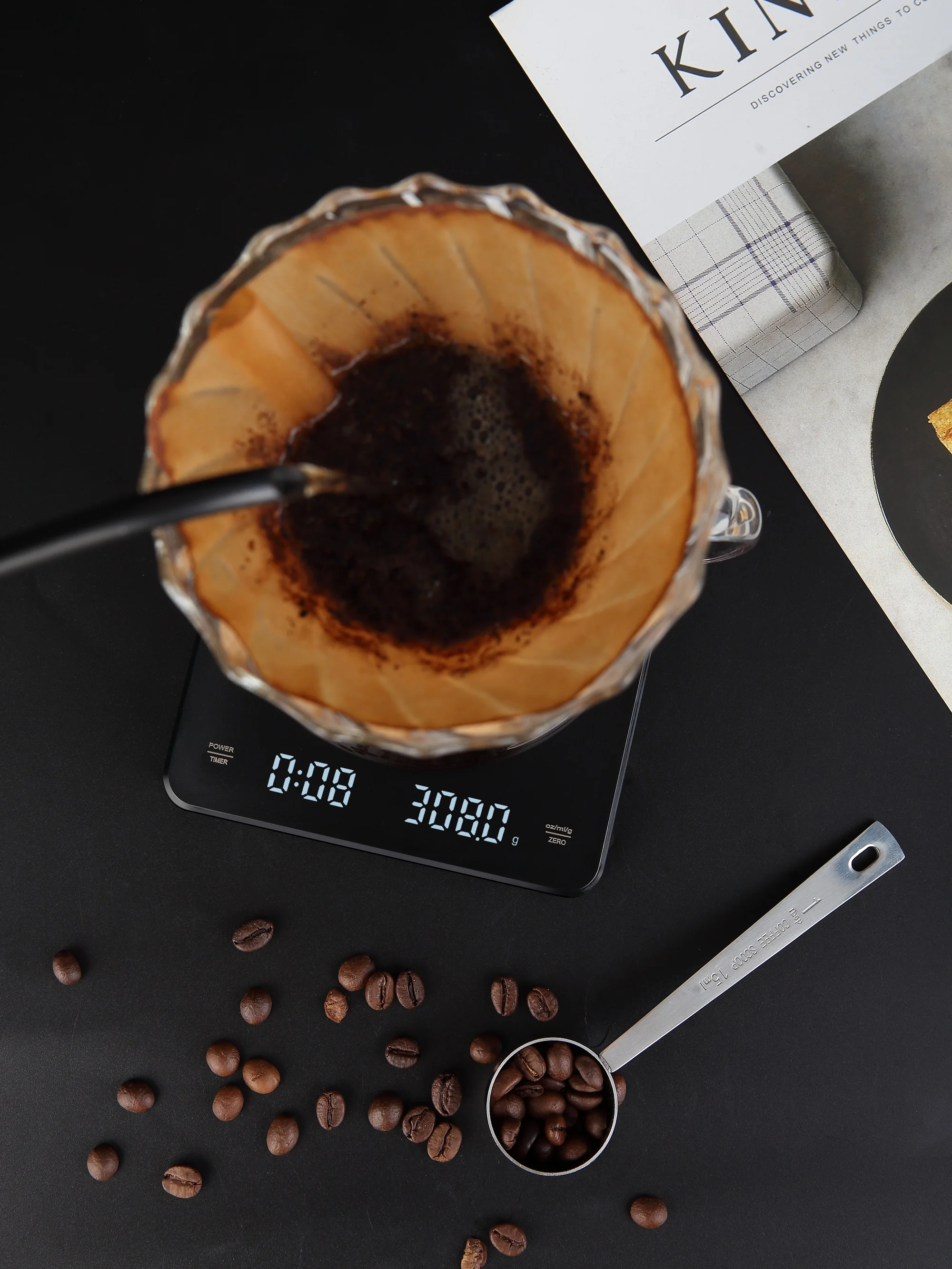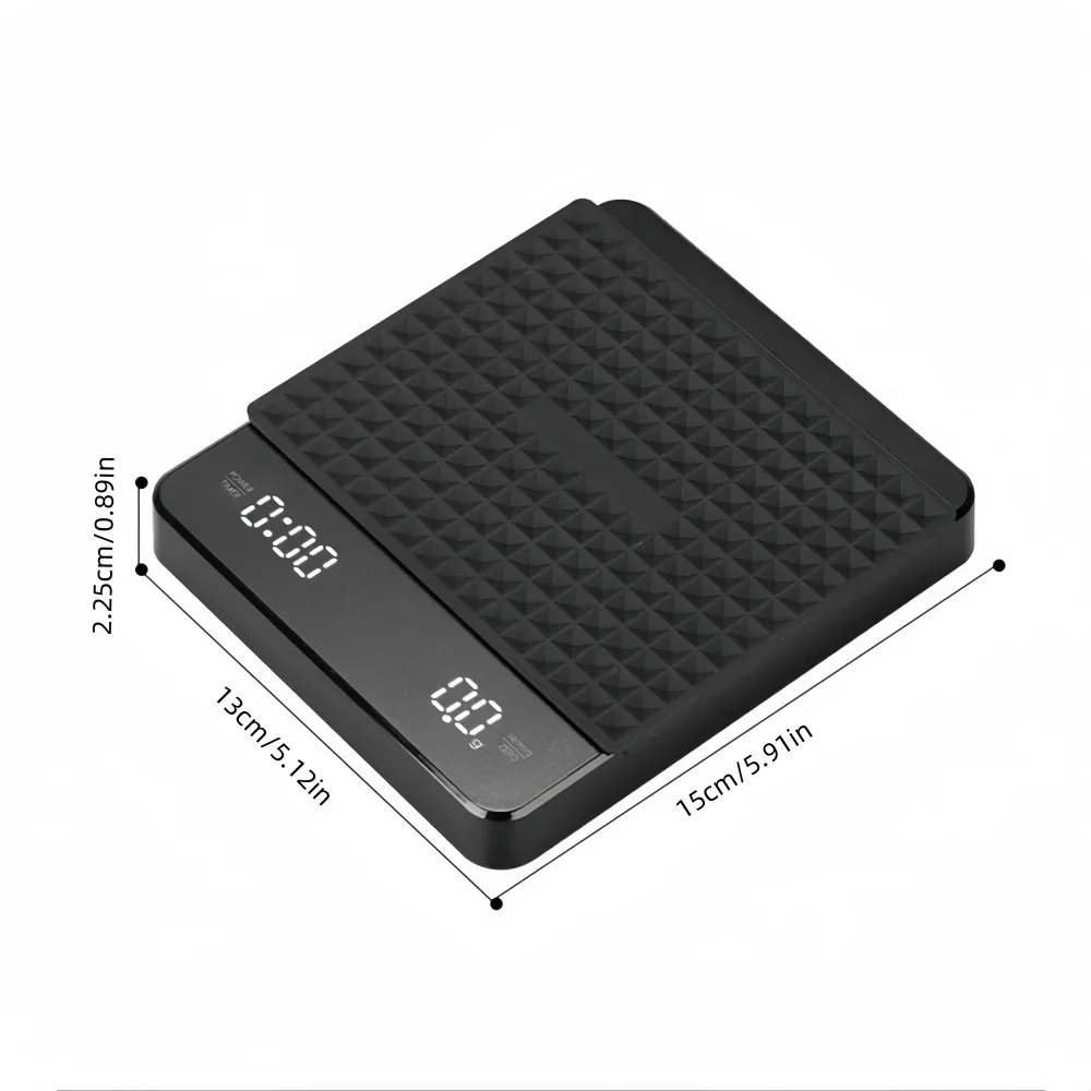 1. This high-precision electronic coffee scale uses advanced sensor technology to ensure a measurement accuracy of up to 0.1 grams. Whether it is precise coffee powder amount control or subtle ingredient adjustment, it can easily handle it, providing impeccable control for your coffee making. Accuracy.