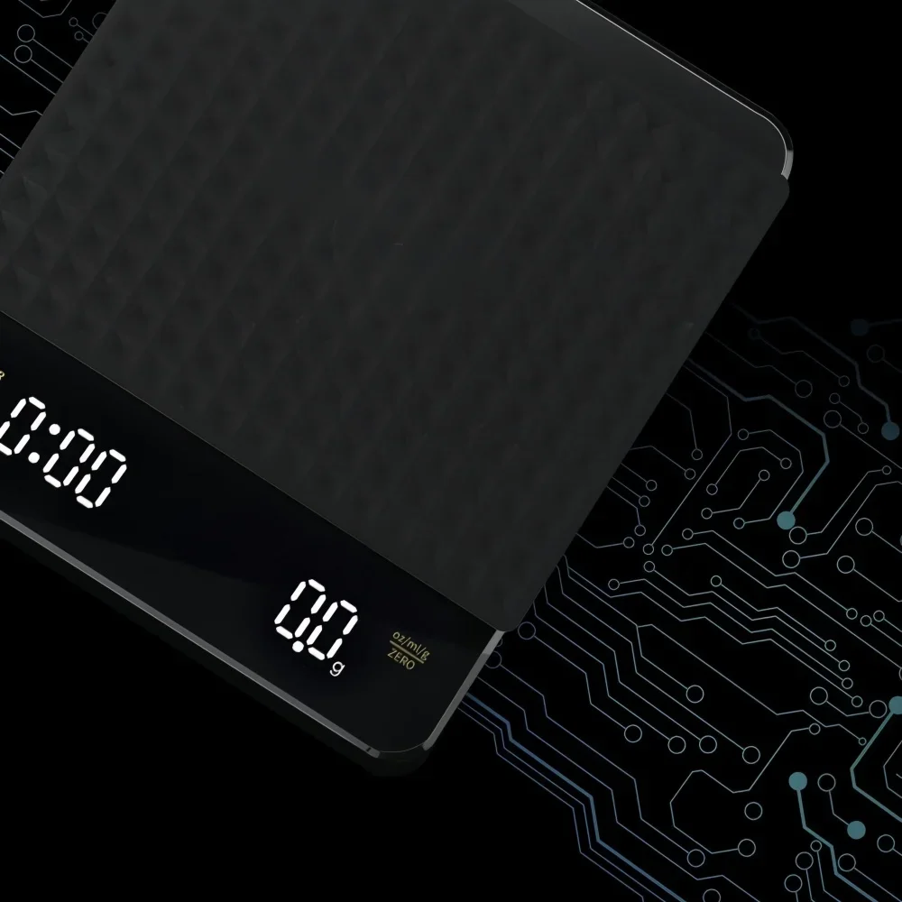2. Equipped with a high-speed processing chip, the electronic scale can respond quickly and display accurate weight after placing items, reducing waiting time and improving your coffee making efficiency.