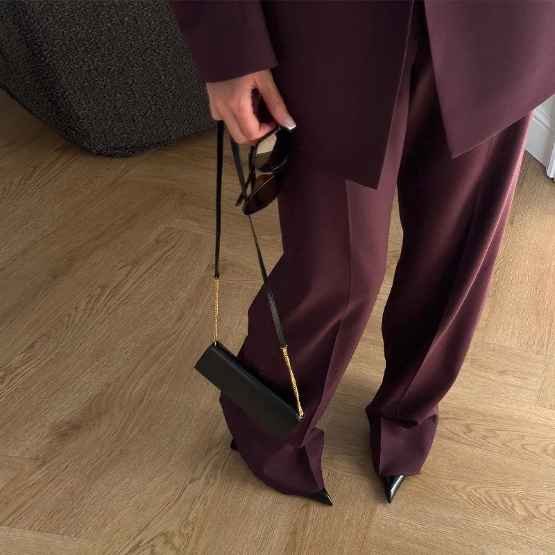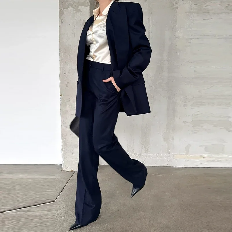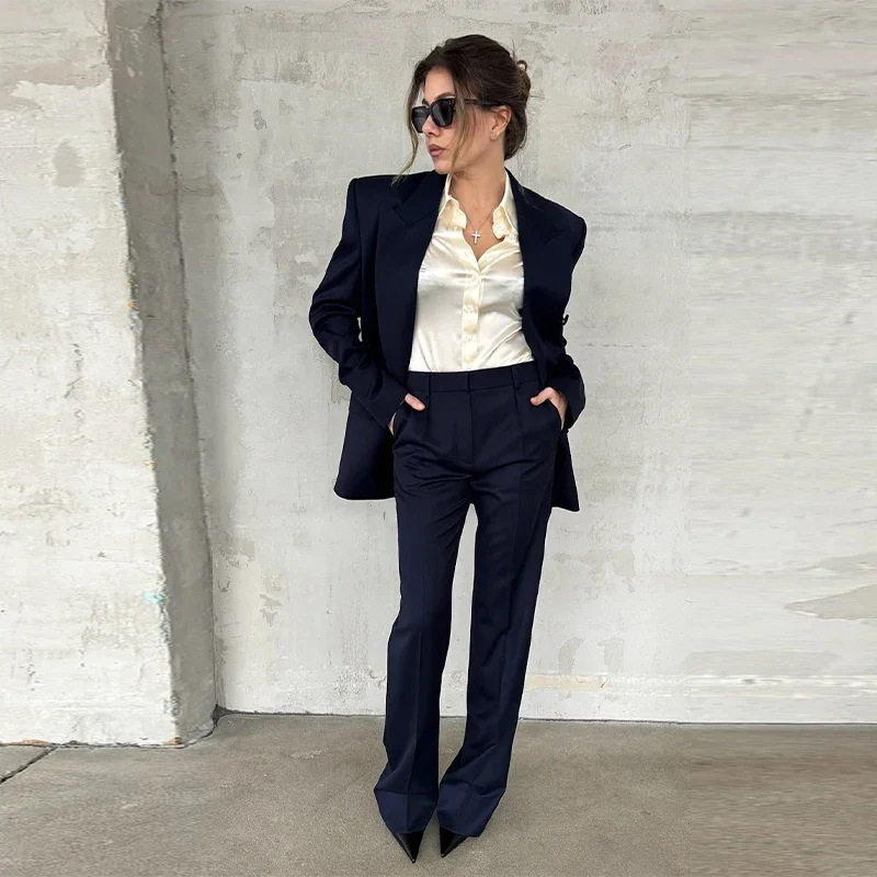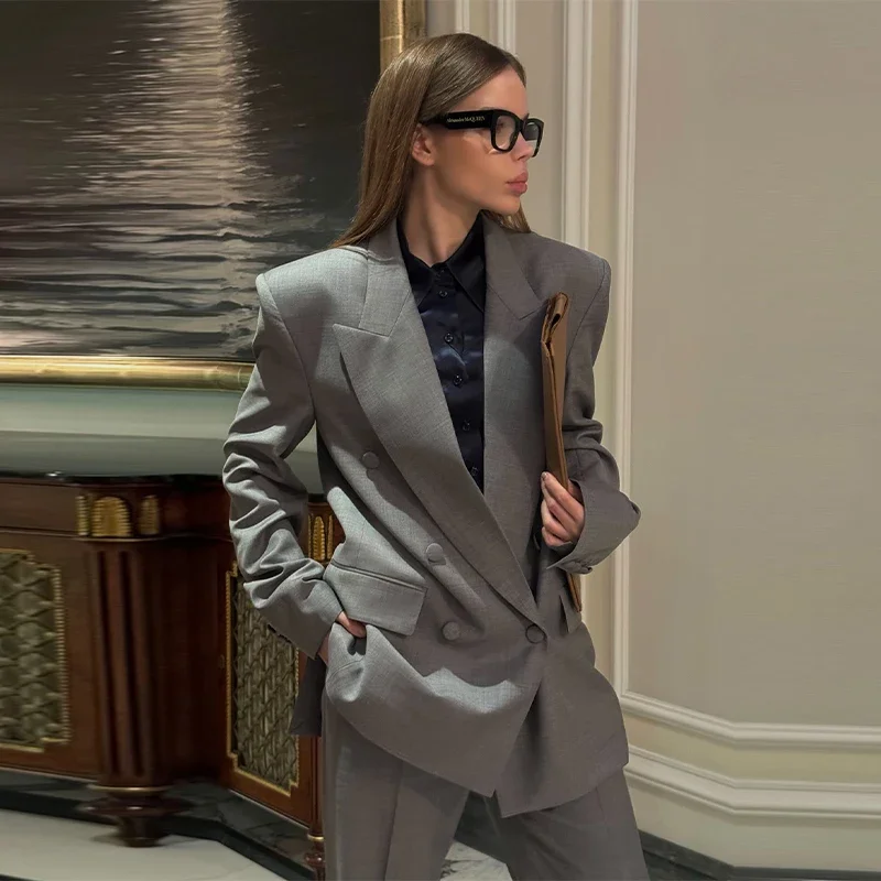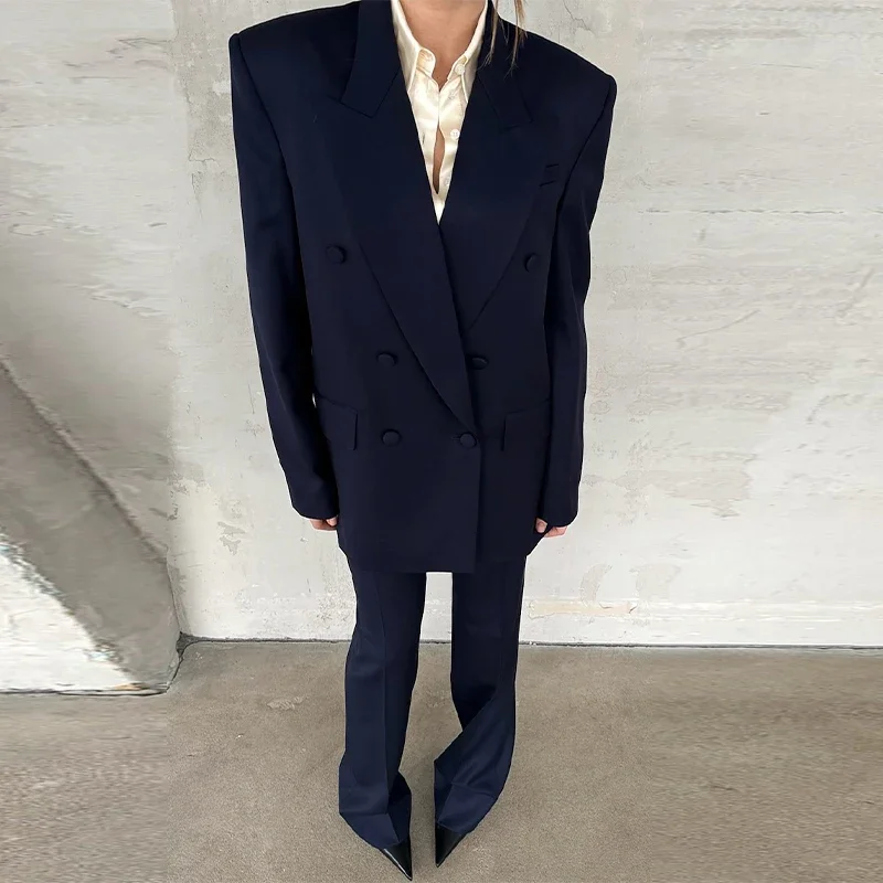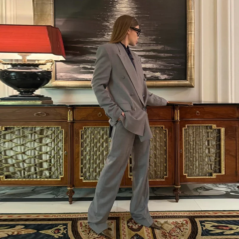 Elegant Blazer Coat Pants Set Women 2026 Lapel Double Breasted Jacket Straight Trousers Female Sets Spring Chic Lady Suit