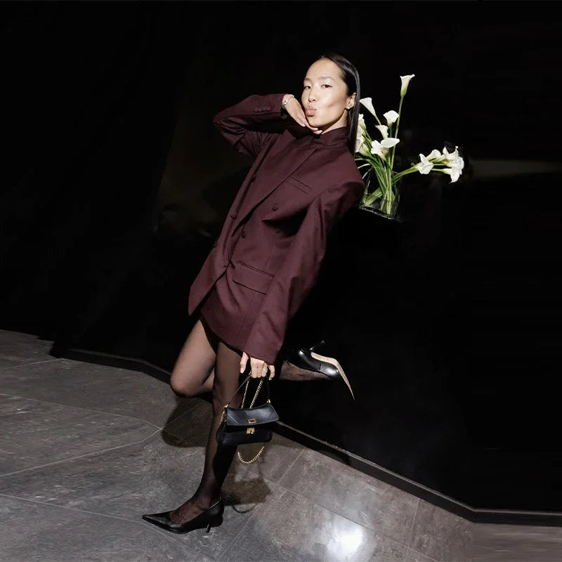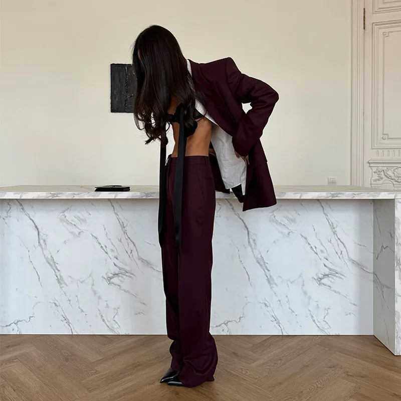 Model Number: Elegant Blazer Coat Pants Set Women