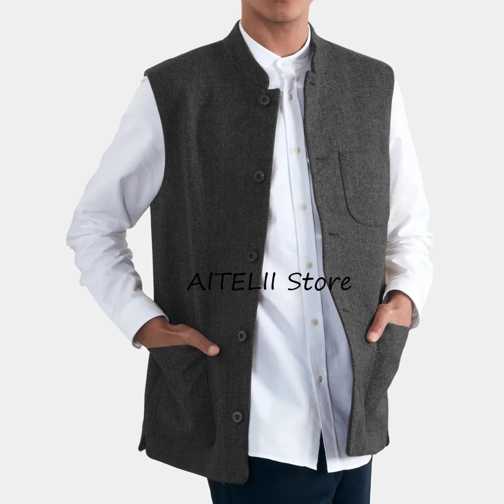 Elegant Man Vest for Men Men's Herringbone Vest Work Vests Mens Gilet Suit Male Gilete Waistcoat Sleeveless Casual Working Suits