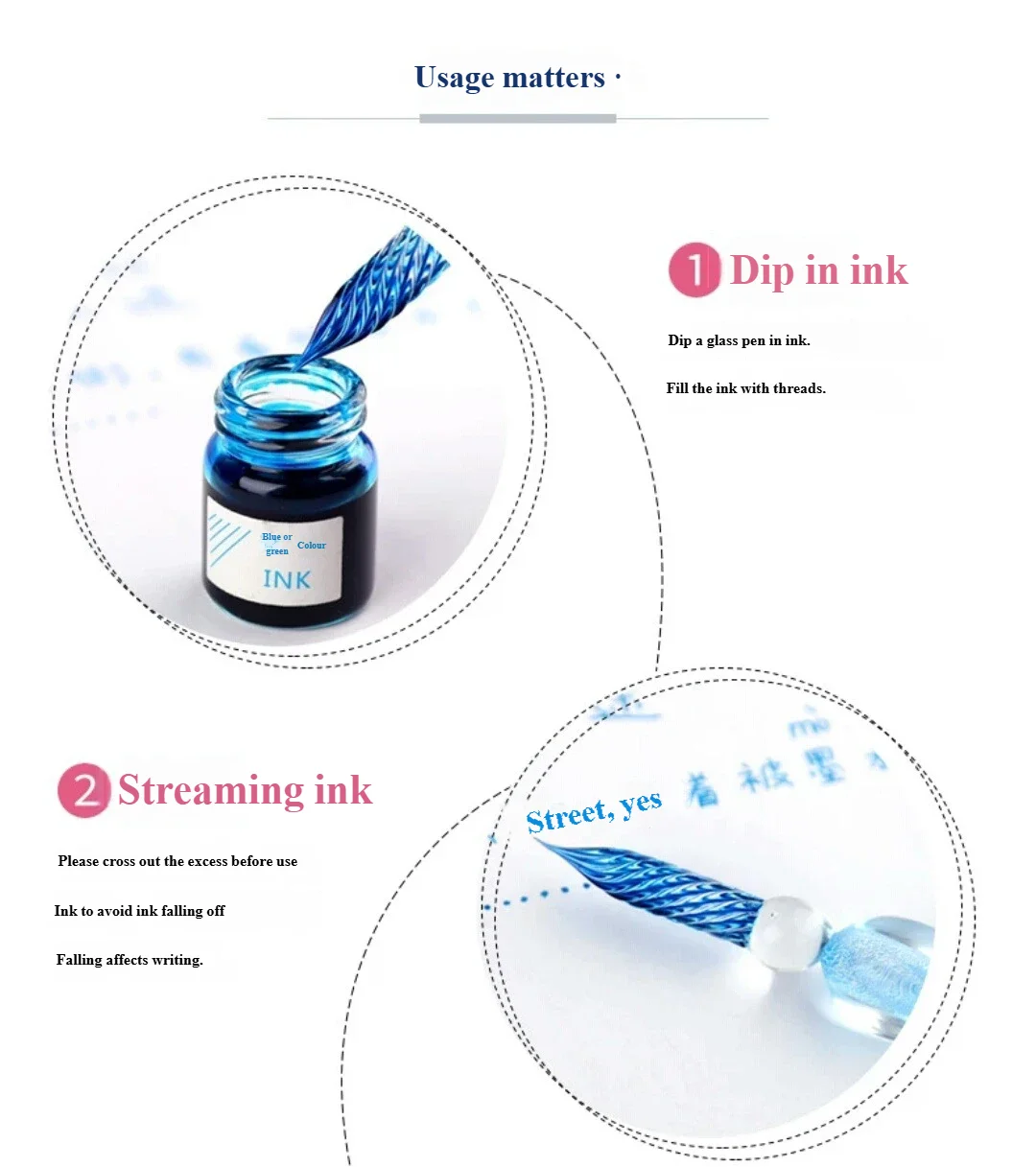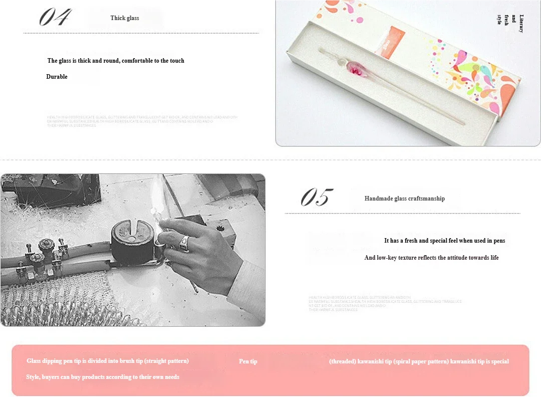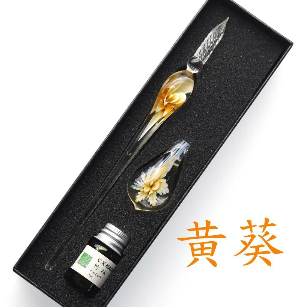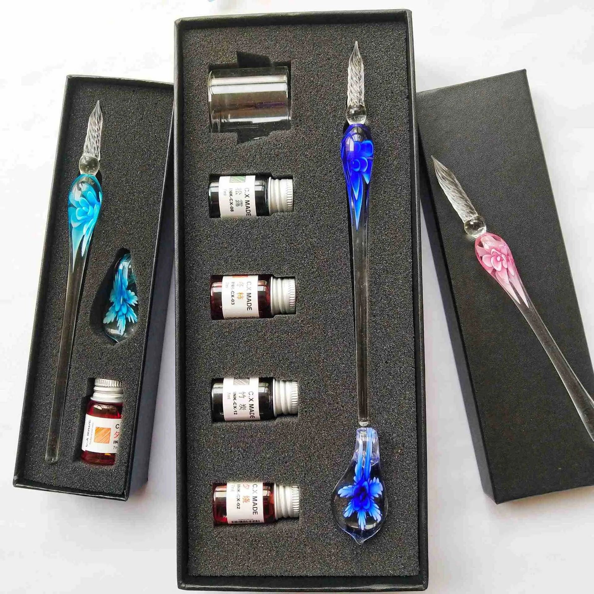Embedded flower glass pen set, colored dipping pen, street vendor gift box, signature pen, glass pen gift