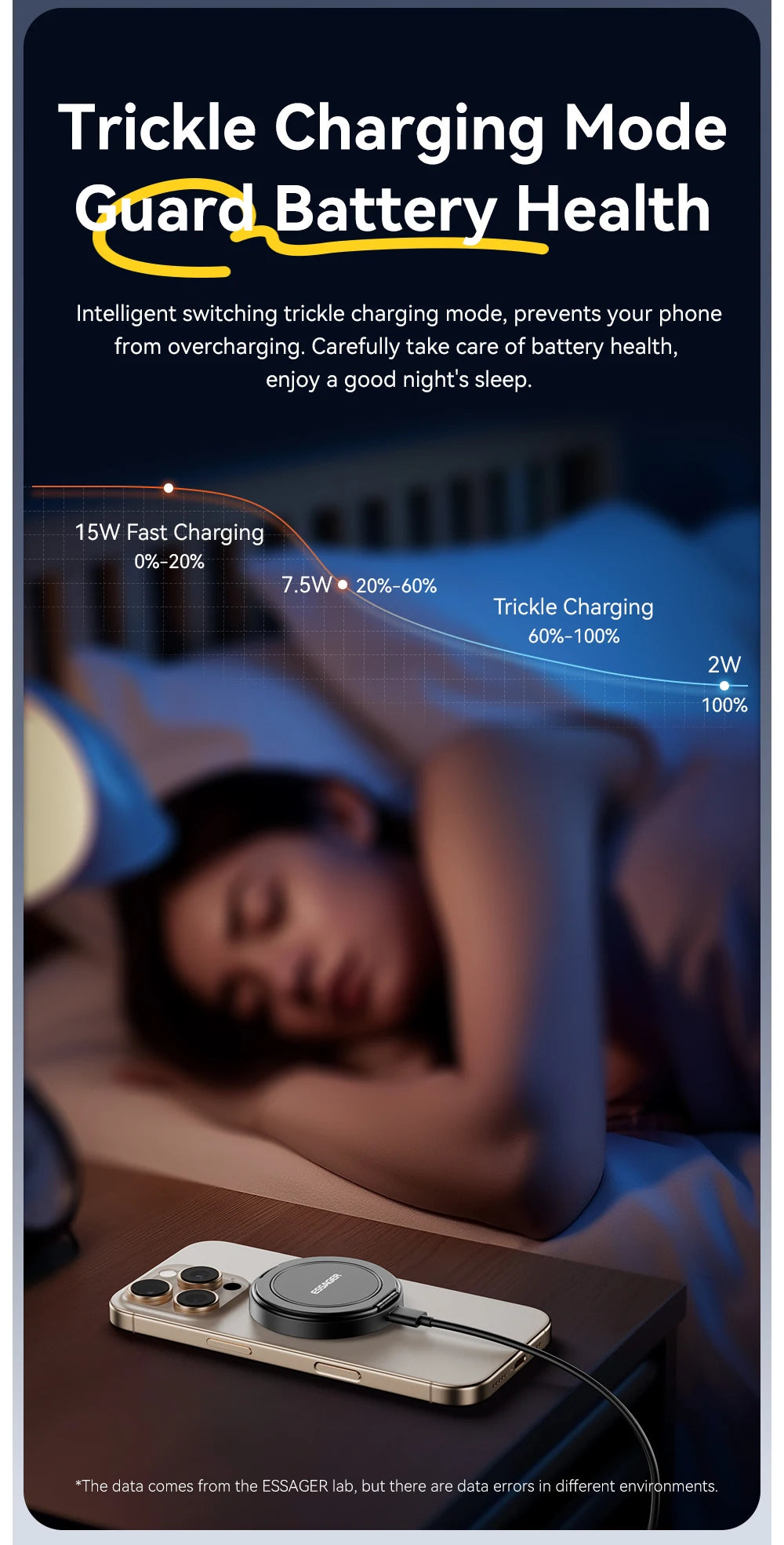 Essager Magnetic Wireless Charger With Holder 15W Fast Charging For iPhone17 16 15 14Pro Max Airpods Mini Wireless Phone Charger