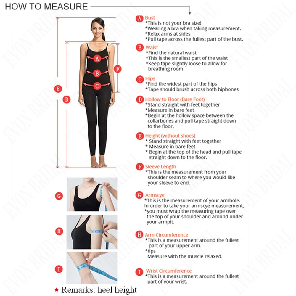 10.Height of heel (The shoes you're going to wear on the day you wear this dress) =___ cm/inches.