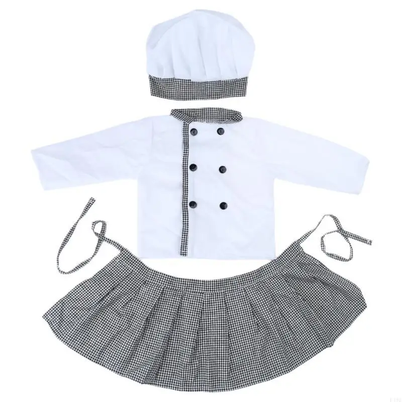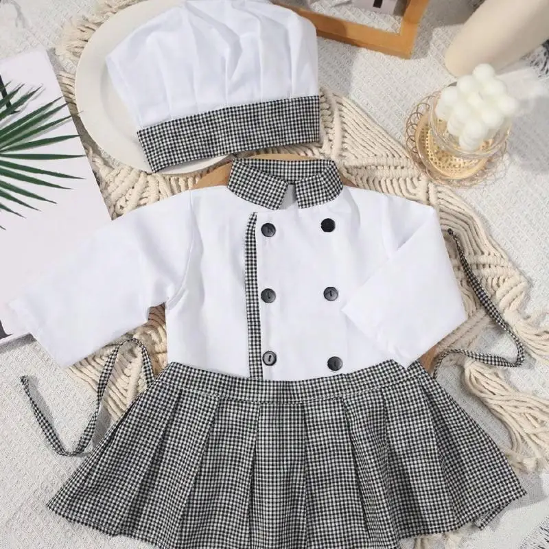 F19F Baby Photo Props Cook Hat Coat Outfit Set Photoshoots Props Infant Cook Costume