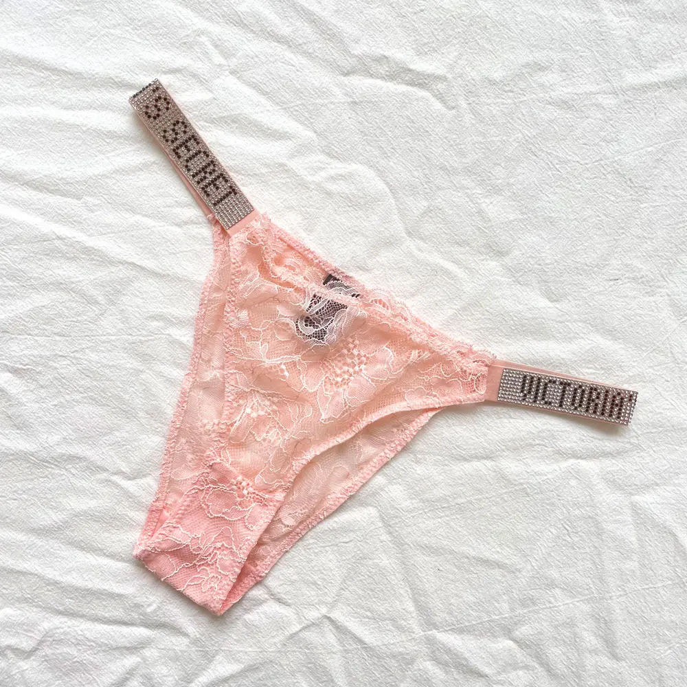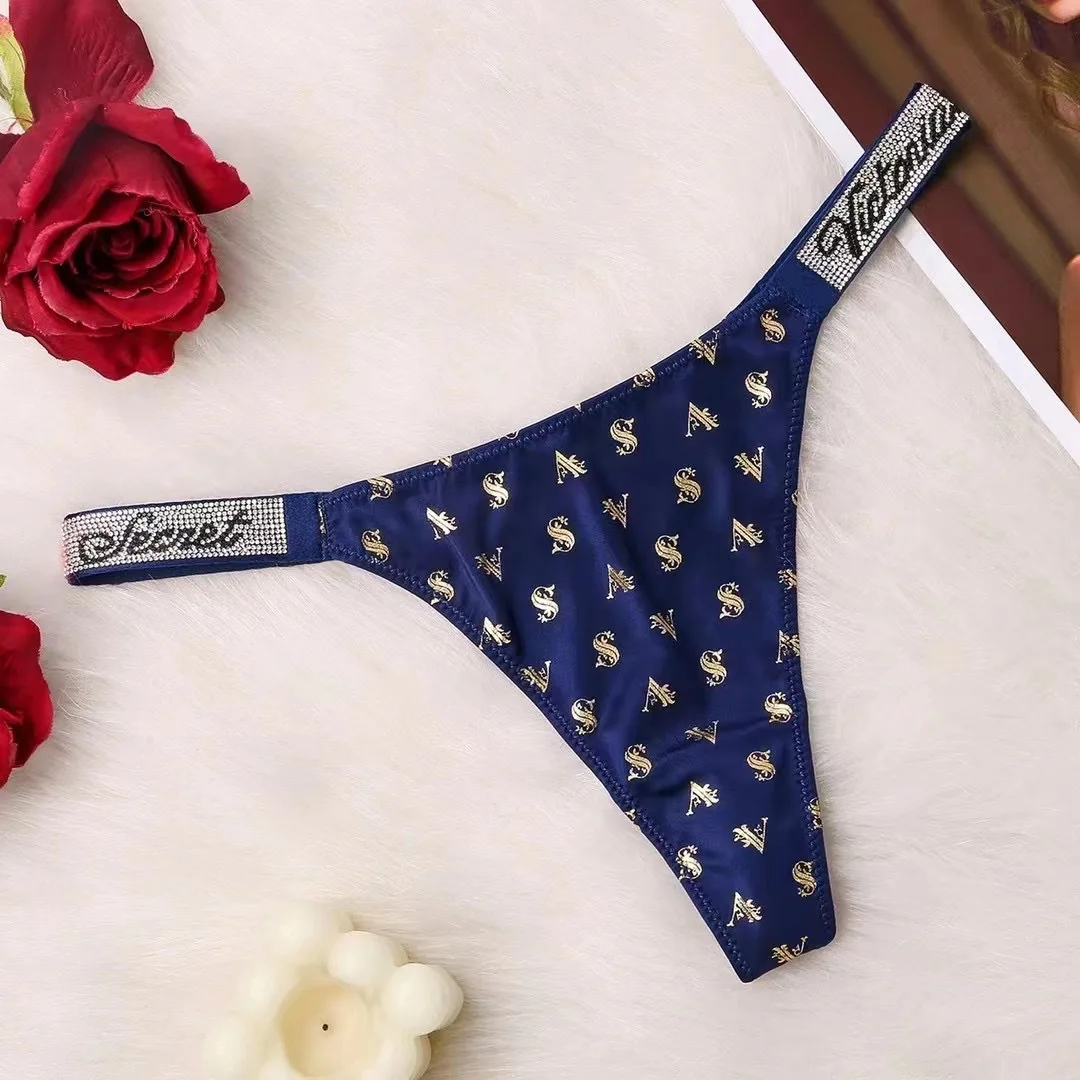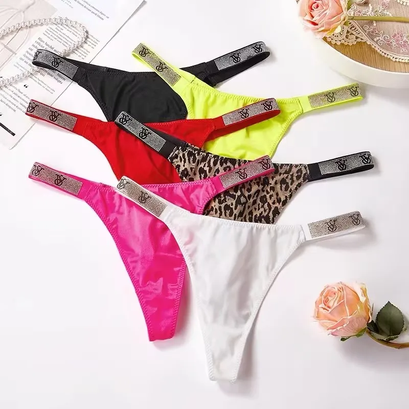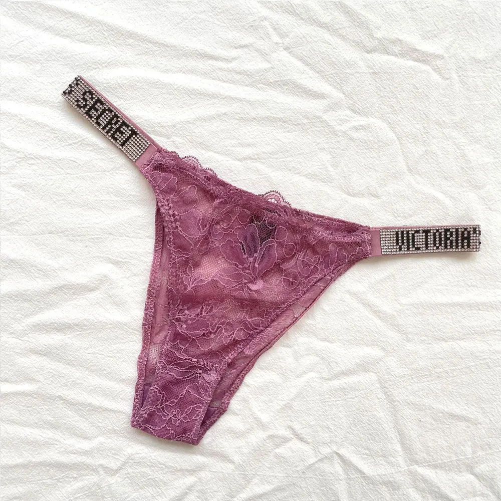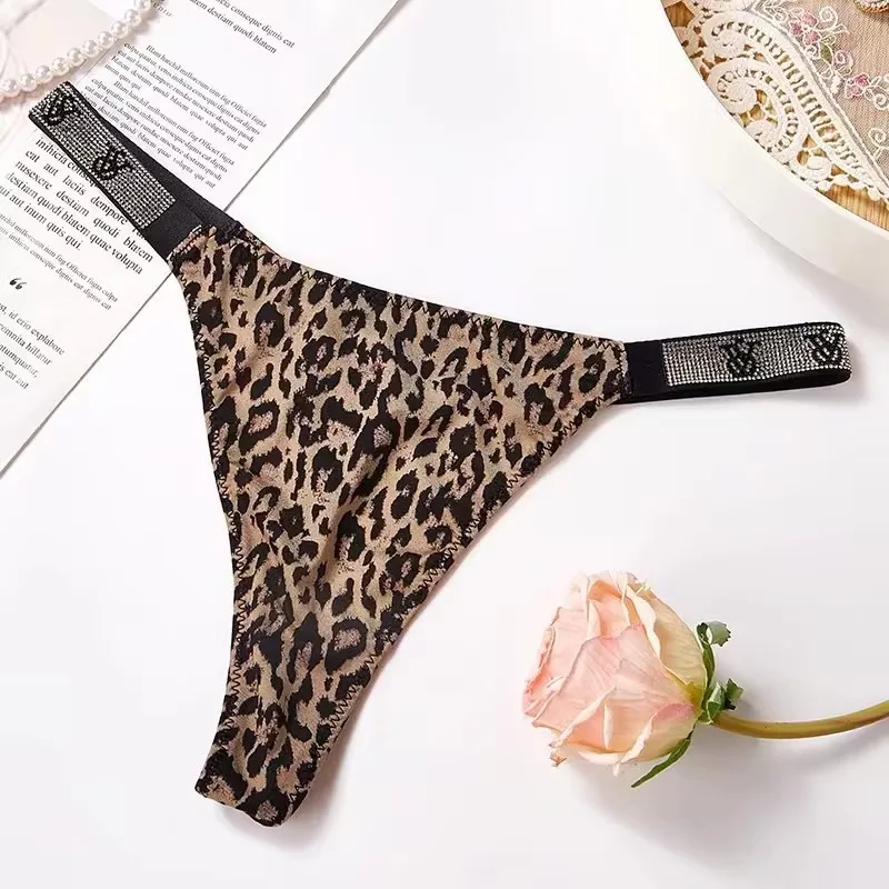 Fashion large size printed women's underwear comfortable rhinestone sexy underwear pink brand thong seamless t-pants metal chain