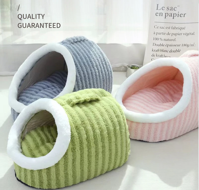 Fashion Warm Thick Sponge Dog Kennel Cat Nest Striped Slipper Design Pet Bed Cozy Comfortable Washable Pet Sleeping Mat
