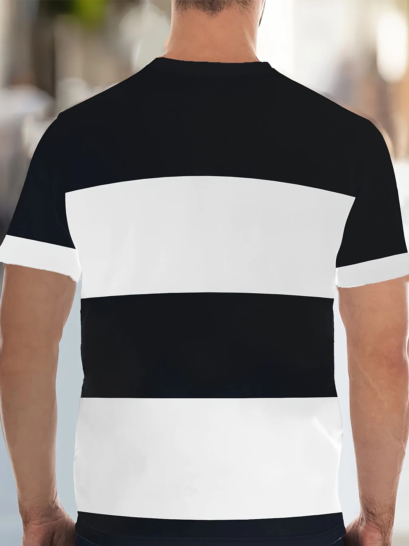 Fashionable men's summer striped print micro elastic breathable round neck T-shirt shorts set outdoor casual two-piece set
