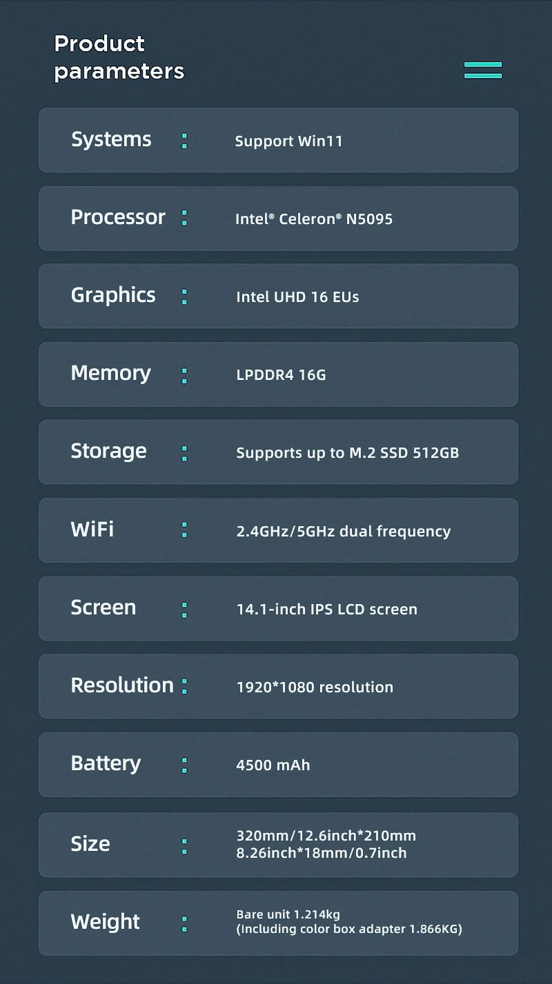 Port: Card Reader,3.5 mm Mic Jack,2*USB3.0,Mini HDMI-Compatible