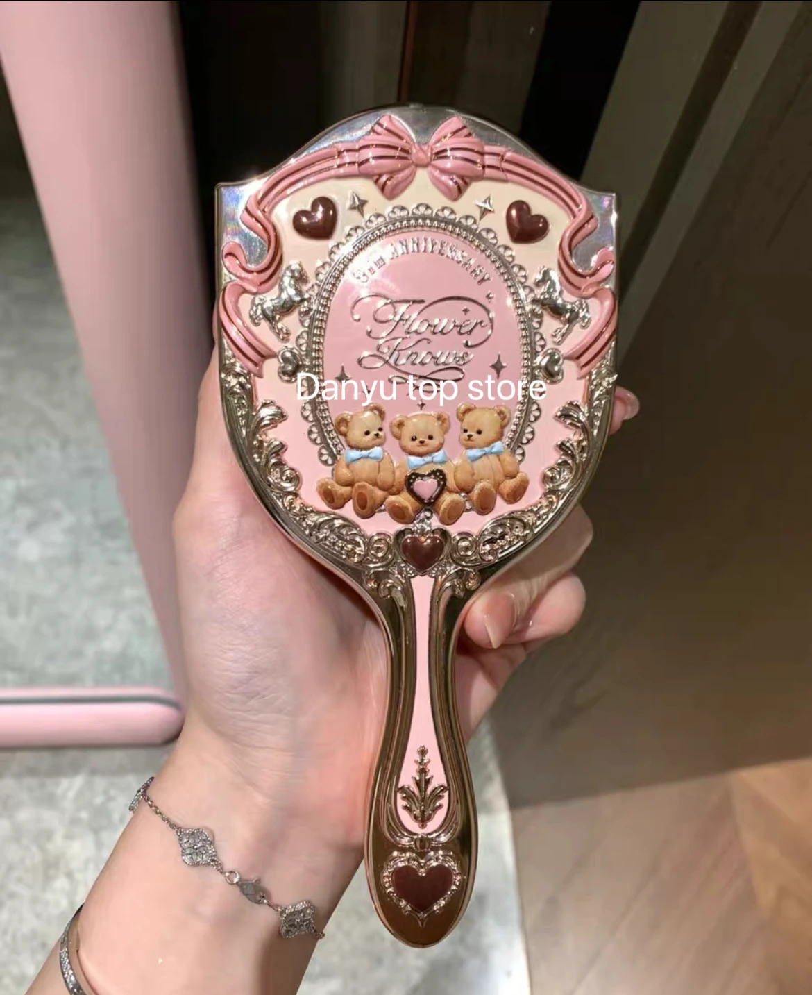 Flower Knows 9th Anniversary Mirror Makeup Tool Table Mirror Air Cushion Comb Cup 3-piece Set