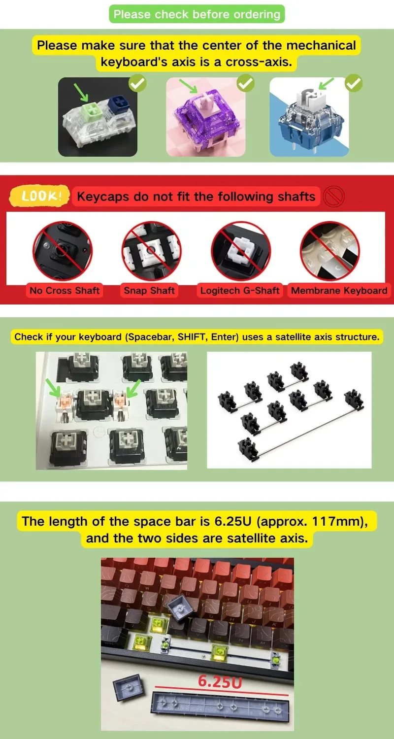 Keys Amount: 61, 64, 68, 78, 84, 87, 96, 98, 100, 104 ,108 keys mechanical keyboards