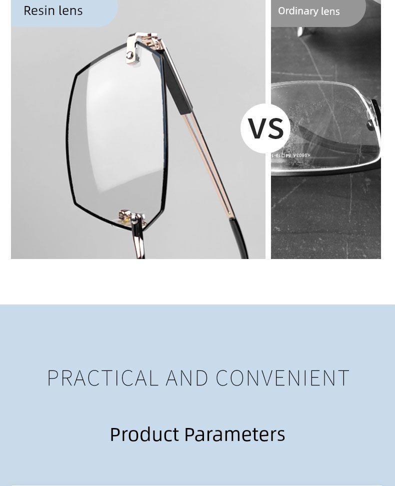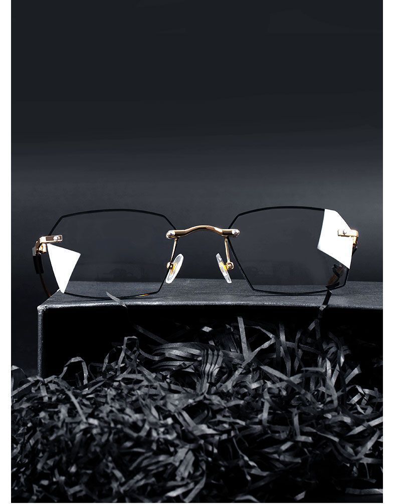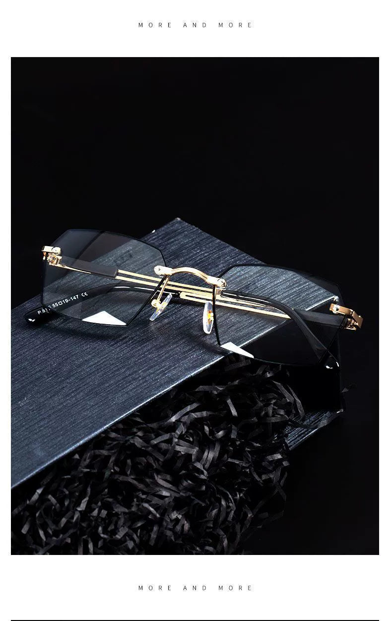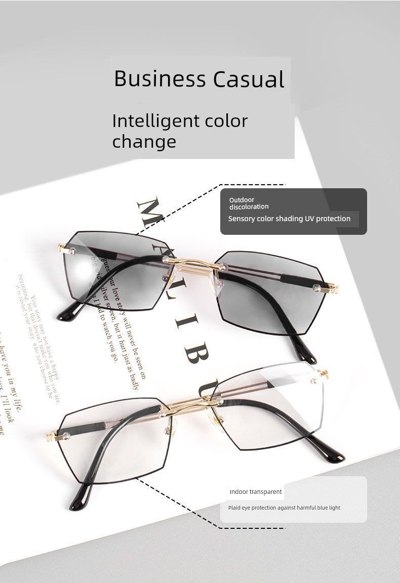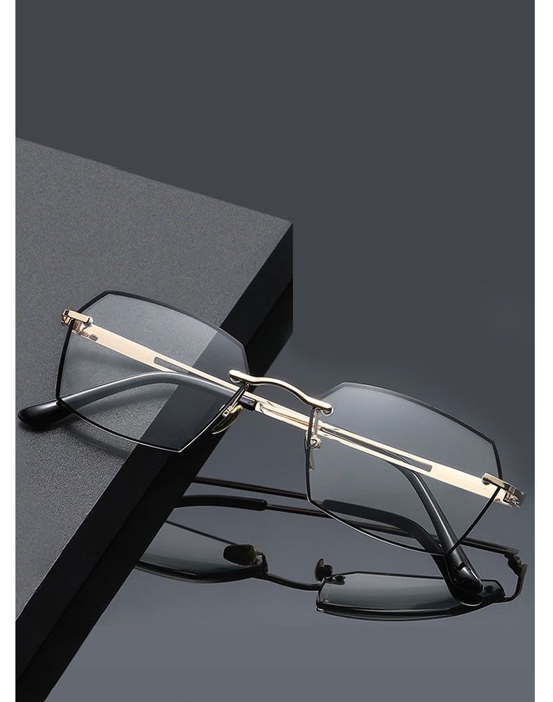 Frameless Business Color-Changing Reading Glasses Men Middle-Aged and Elderly HD Anti-Blue Ray Radiation Indoor and Outdoor Dual-Use Presbyopic Glasses