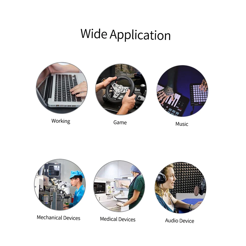 Widely applied for working, game, music, mechanical devices, medical devices, audio equipment, etc.