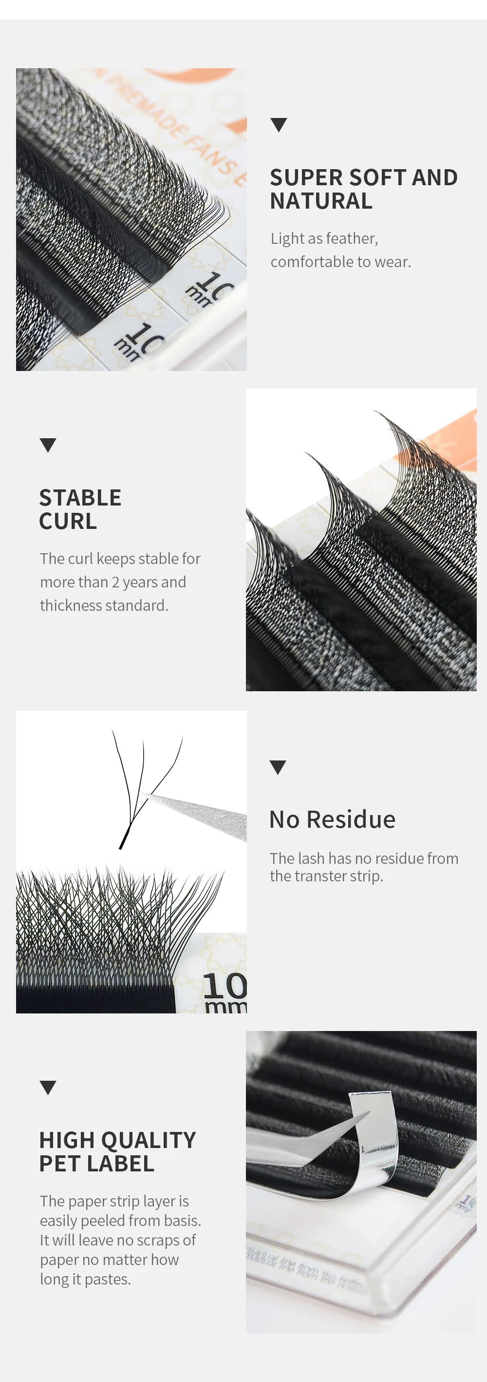 Curl: C/D Thickness:0.07mm Lengths:8/9/10/11/12/13/14mm 3D CLOVER EYELASH EXTENSION It's made of three eyelashes, which looks like "clover", The three eyelashes make up for each other and the effect is natural and dense, Grafting Speed increased by more than 50%