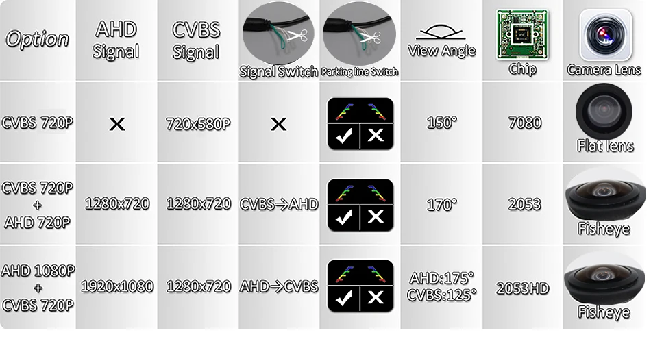 • 1080P / 720P Optional • If AHD1080P cannot be selected, AHD1080P cameras are not supported!