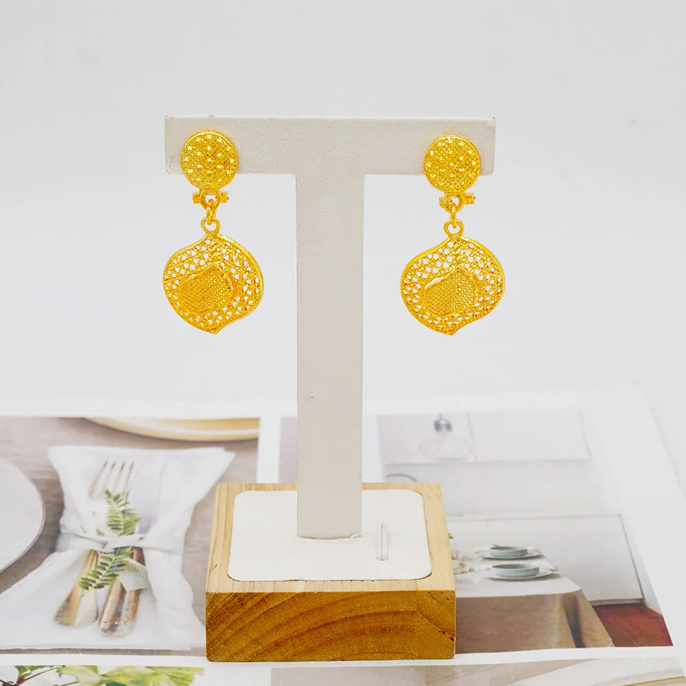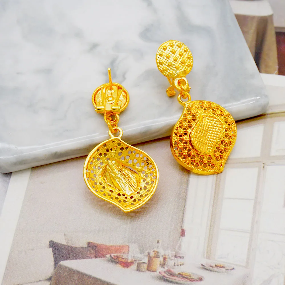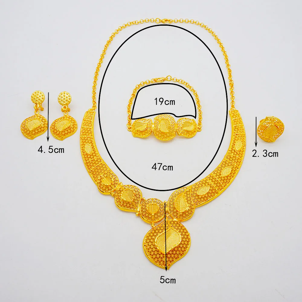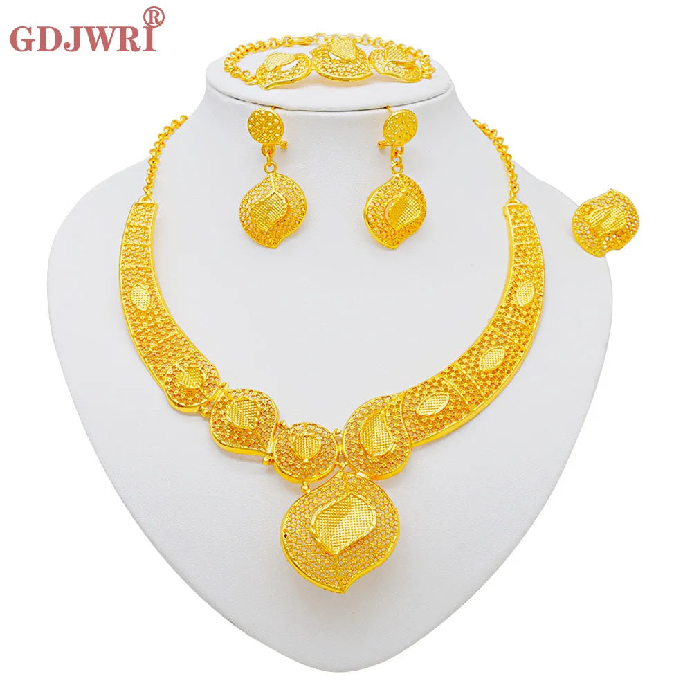 GDJWRI New Luxury Necklace and Earrings Jewelry Set Women Gold Color Copper Elegant African Ethiopian Dubai Wedding Party Gift