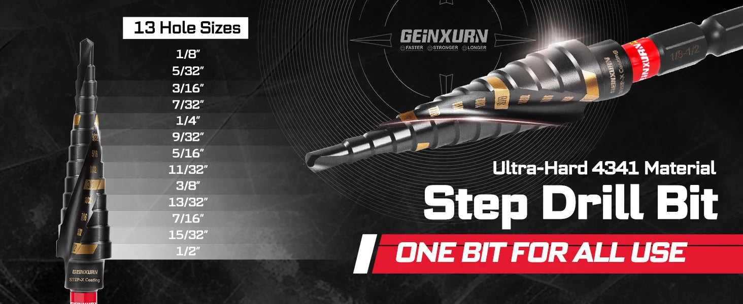 Complete hole-sizing range from 1/8" to 1/2" (including 5/32", 3/16", 1/4", 3/8", and more) – replace a bulky drill bit set with this single, precision-tapered tool