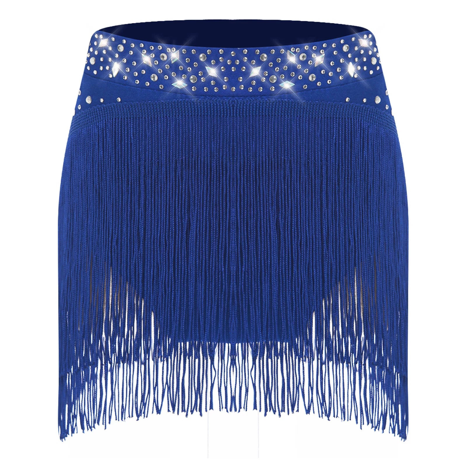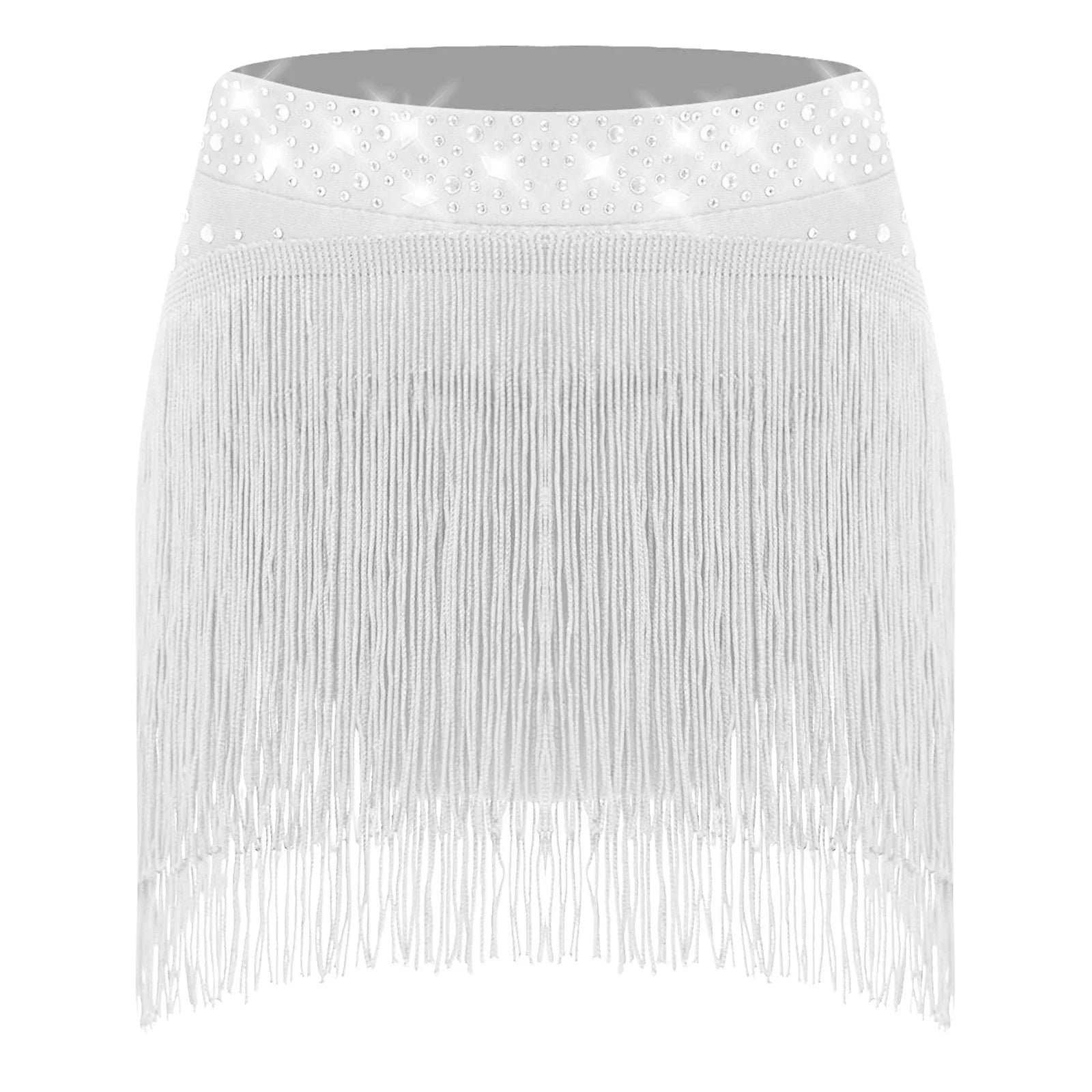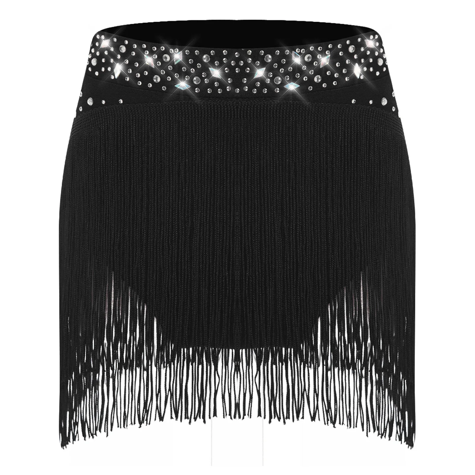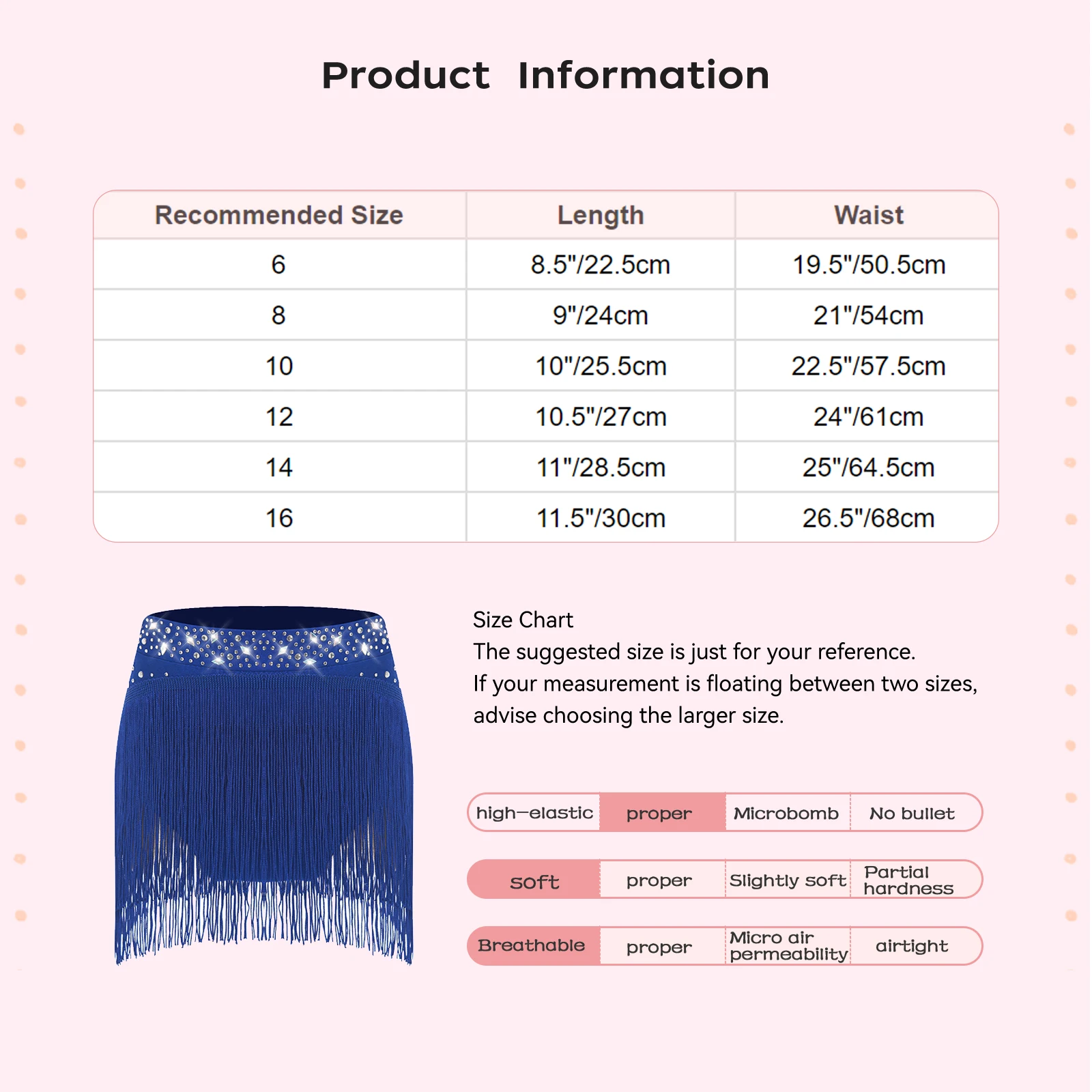 Girls Sparkly Sequins Latin Jazz Tango Dance Skirts Elastic Waistband Fringe Skirt with Safety Shorts Dance Performance Costumes