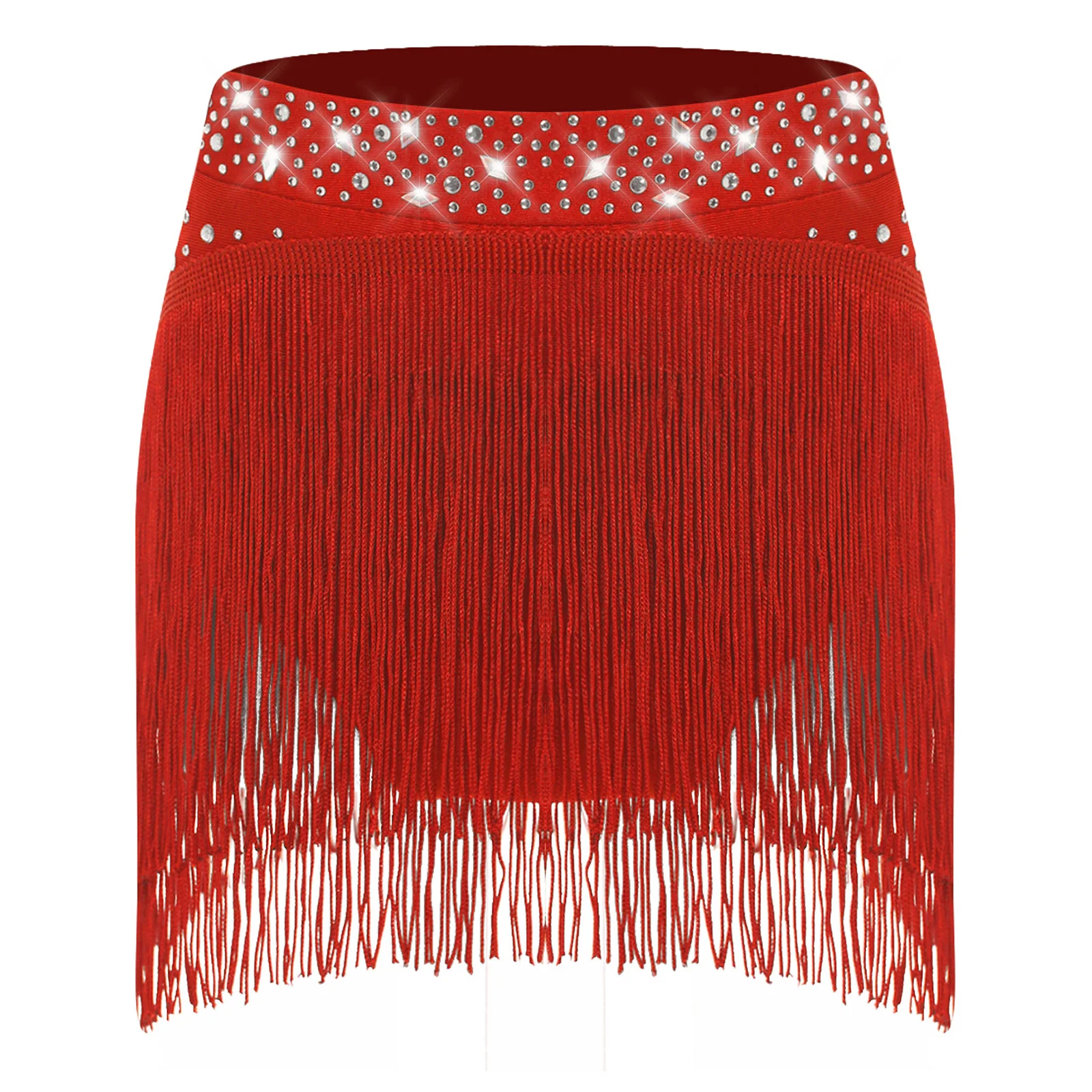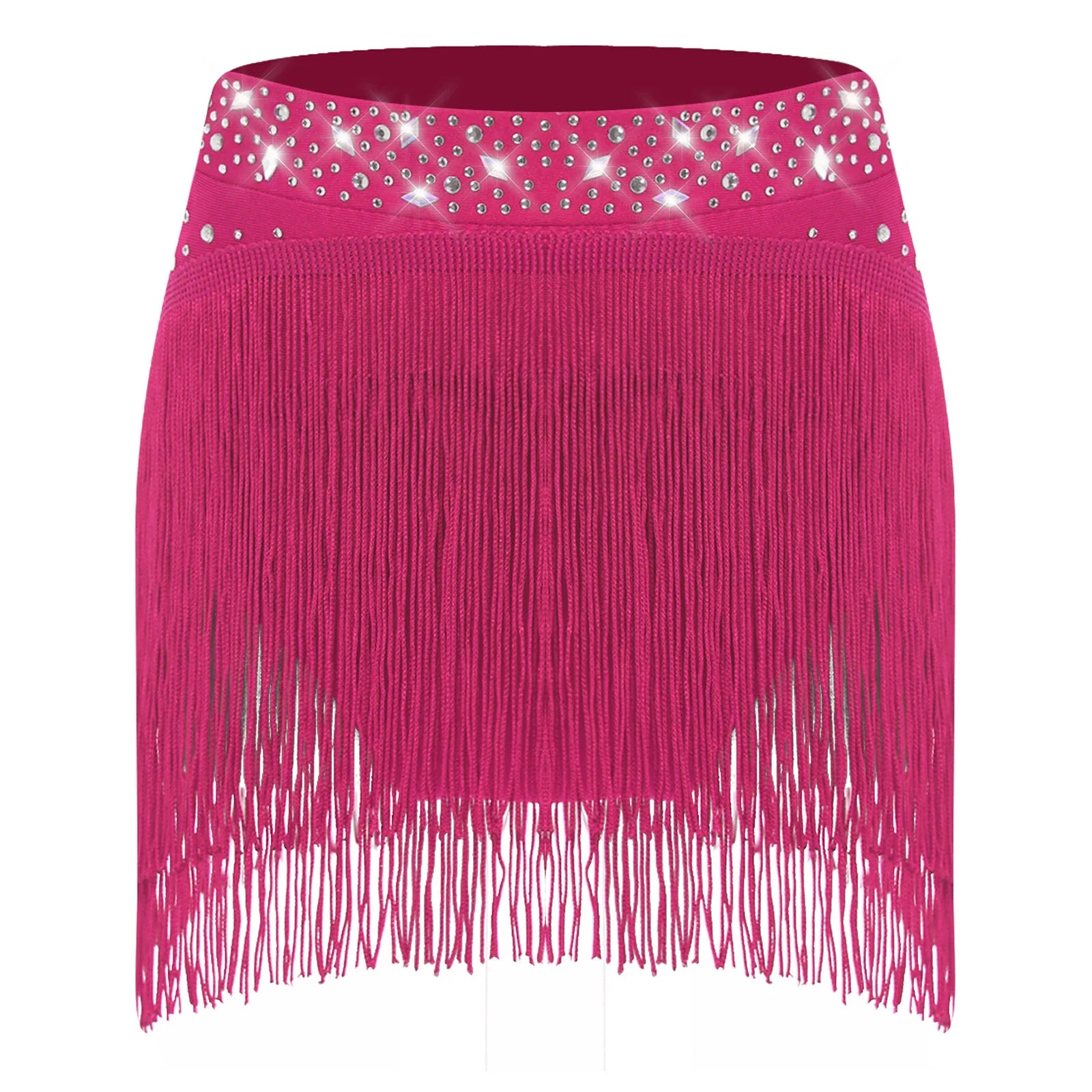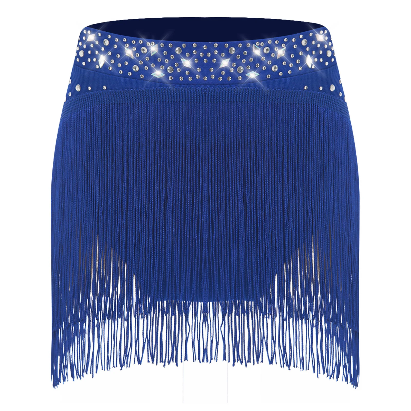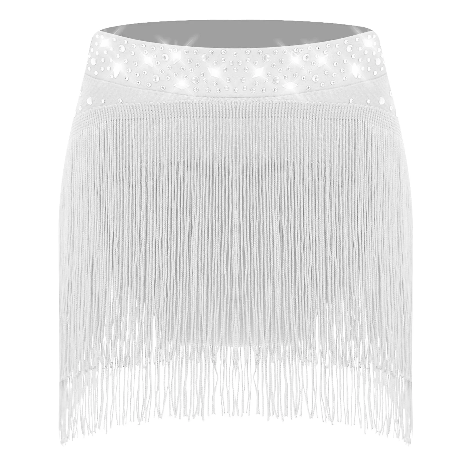 Girls Sparkly Sequins Latin Jazz Tango Dance Skirts Elastic Waistband Fringe Skirt with Safety Shorts Dance Performance Costumes
