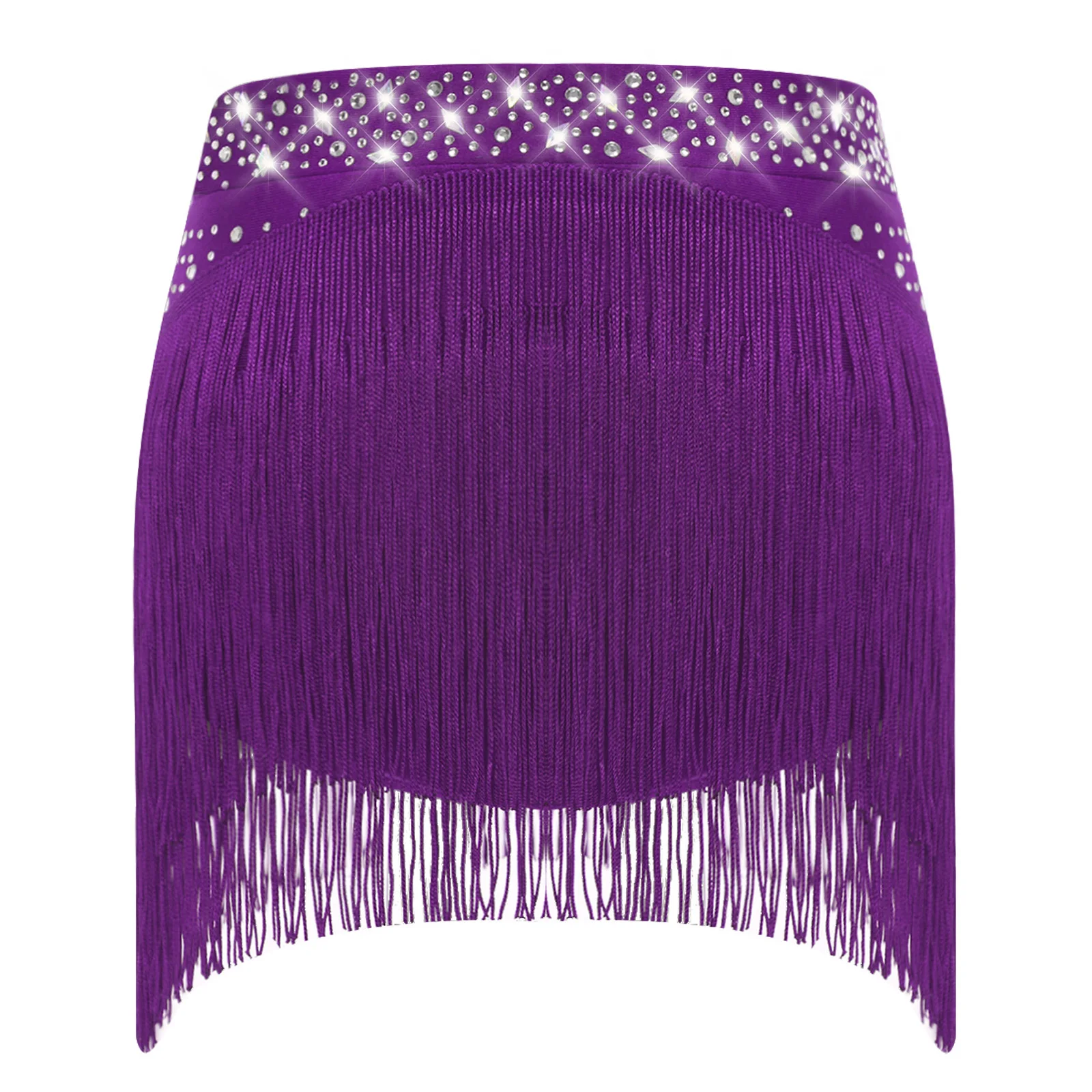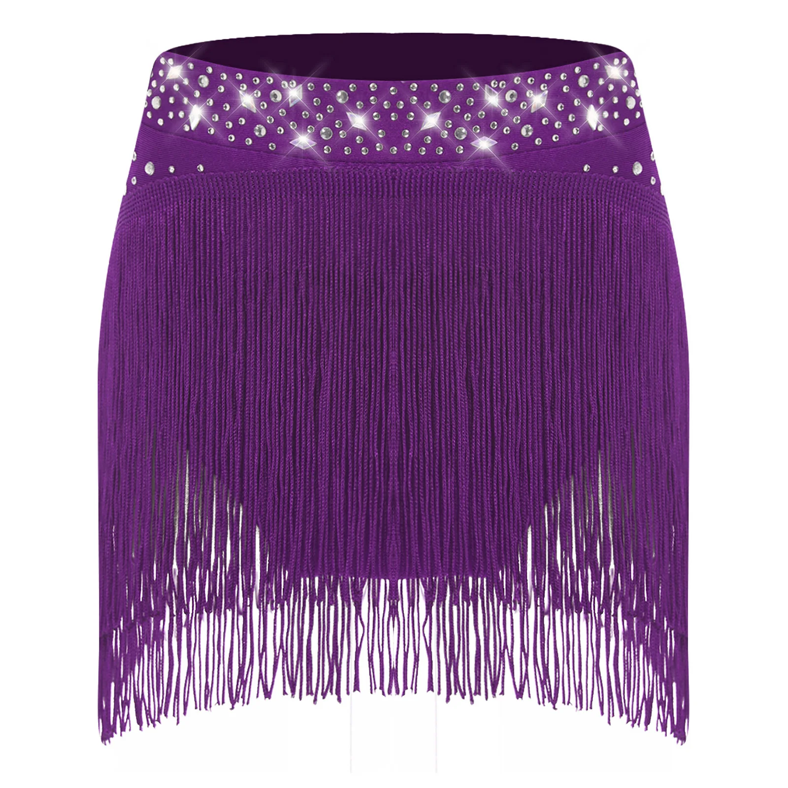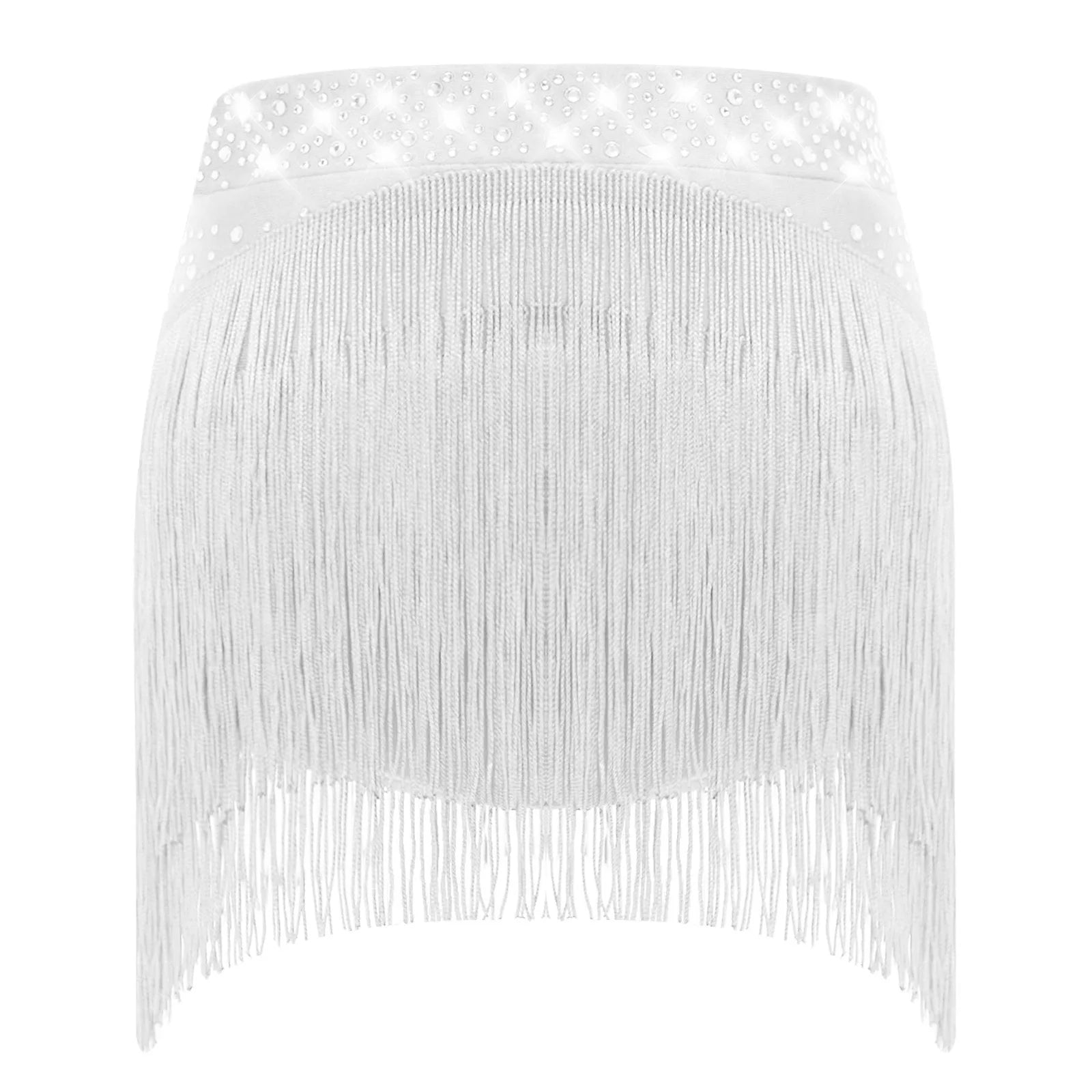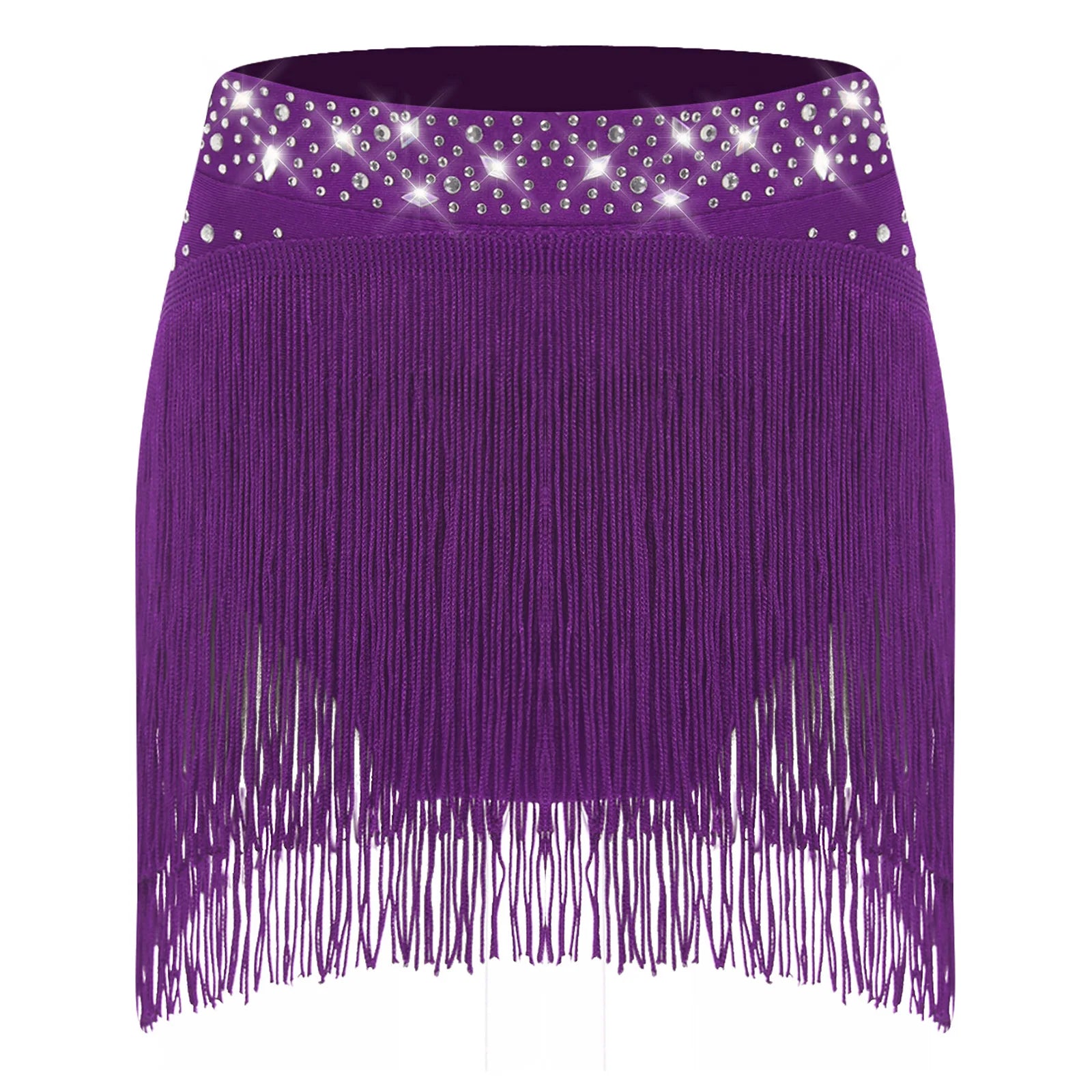 Girls Sparkly Sequins Latin Jazz Tango Dance Skirts Elastic Waistband Fringe Skirt with Safety Shorts Dance Performance Costumes