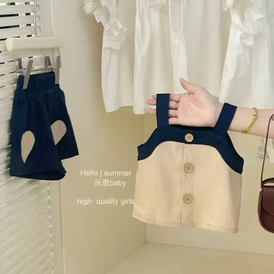 Girls' Summer Clothing Set 2025 New Children's Korean Fashion Square Collar Vest Top + Shorts 2Pcs Set Kids Girls Clothes 1-6Y