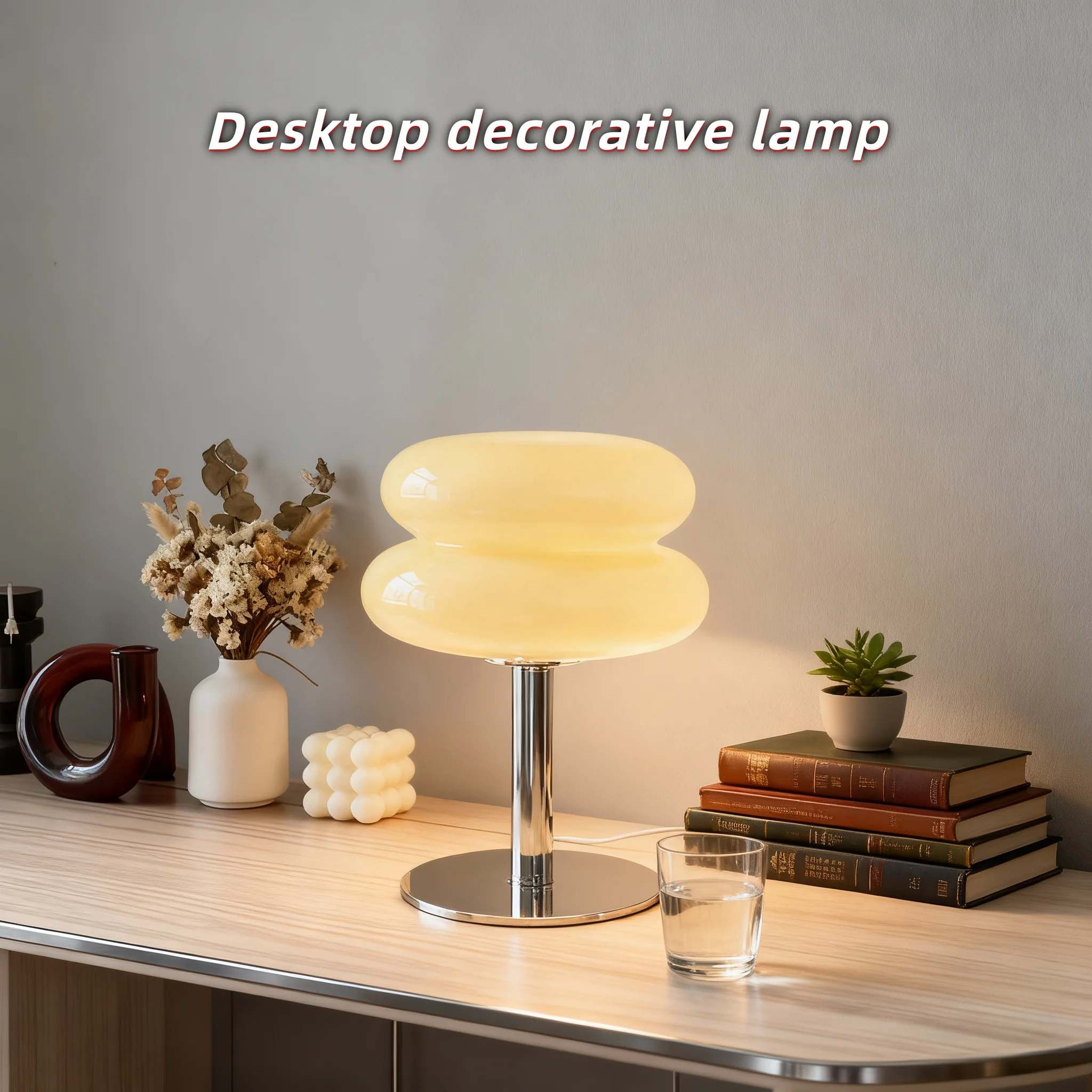Glass desk lamp with three color dimming, living room atmosphere light, eye protection night light, girls' bedroom bedside decor