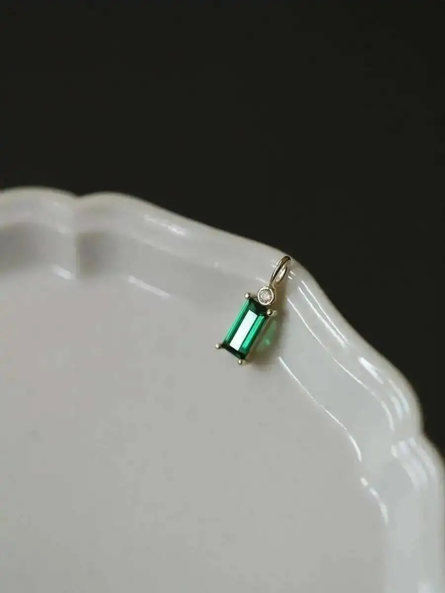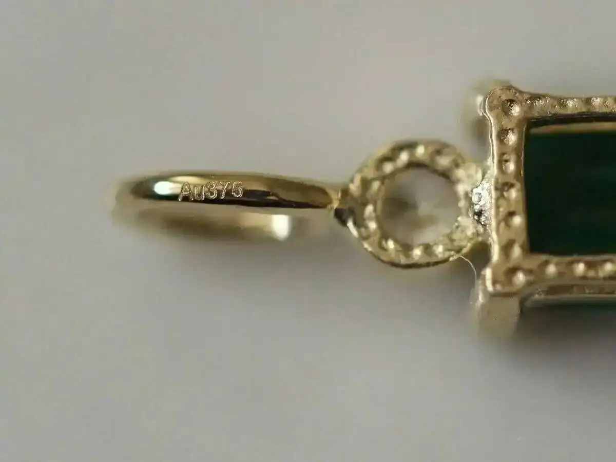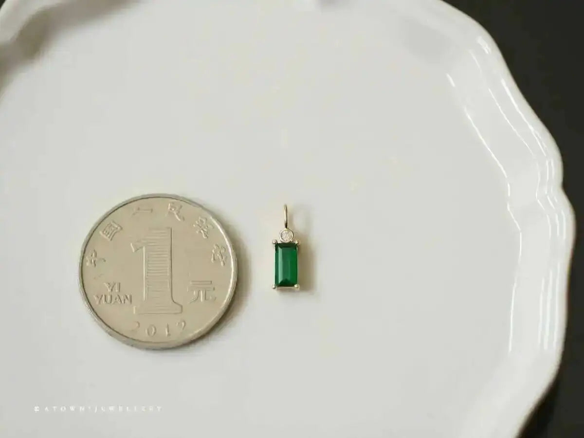 GOLDtutu Pure 9K Gold Necklace Pendant for Grandmother Green Rectangular Diamond, Mini Temperament Retro, kj450