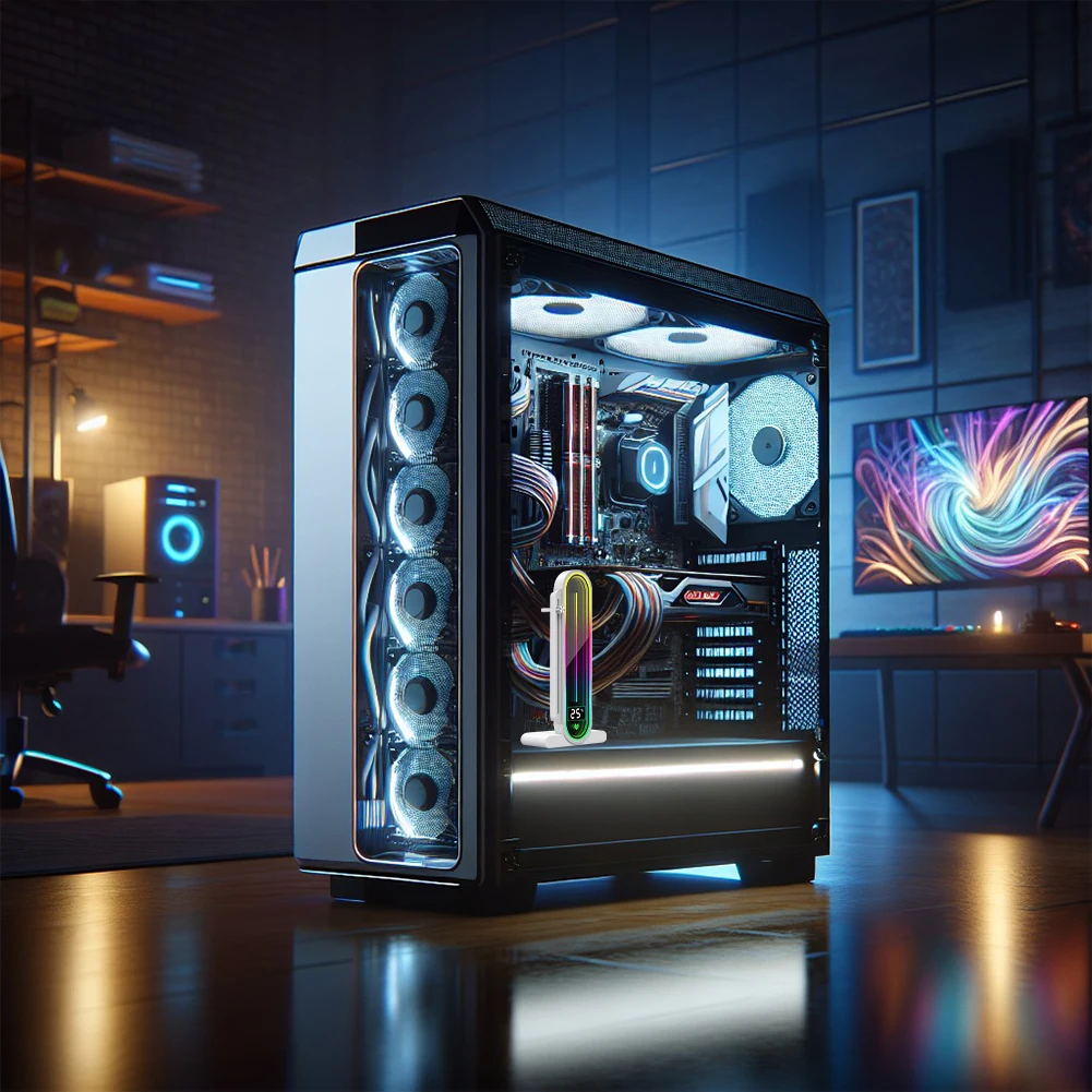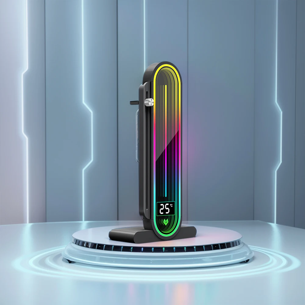 COOLMOON/AOSOR Vertical Graphics Card Bracket 5V 3Pin ARGB Infinite Mirror Light Effect Aluminum Alloy Video Card Bracket Stand Jack Desktop Computer Case Video Card Holder Magnetic Base GPU Water Cooling Kit Support Stand With LED Smart Temperature Display Screen