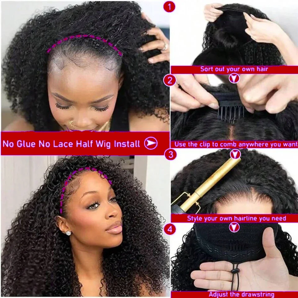 Half Wig Human Hair Jerry Curly Glueless Wigs Human Hair Curly Half Wig Drawstring Seamless Flip Over Half Wigs for Black Women