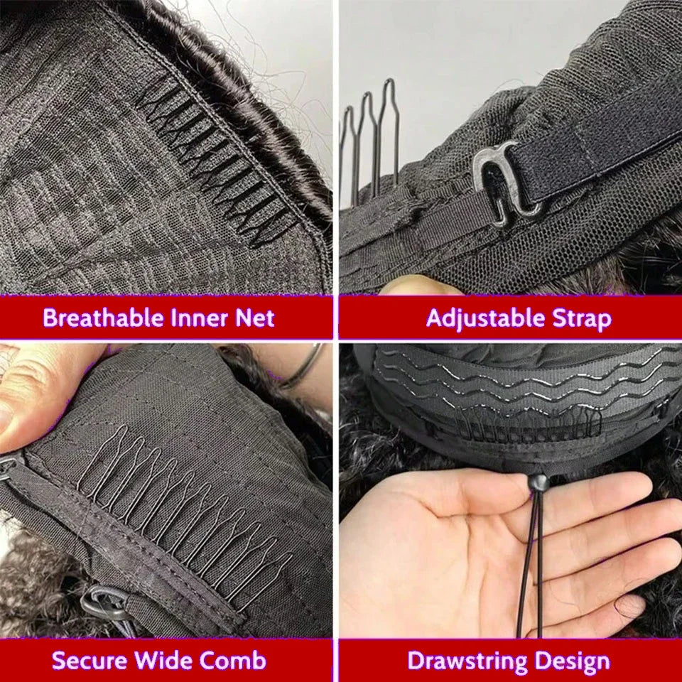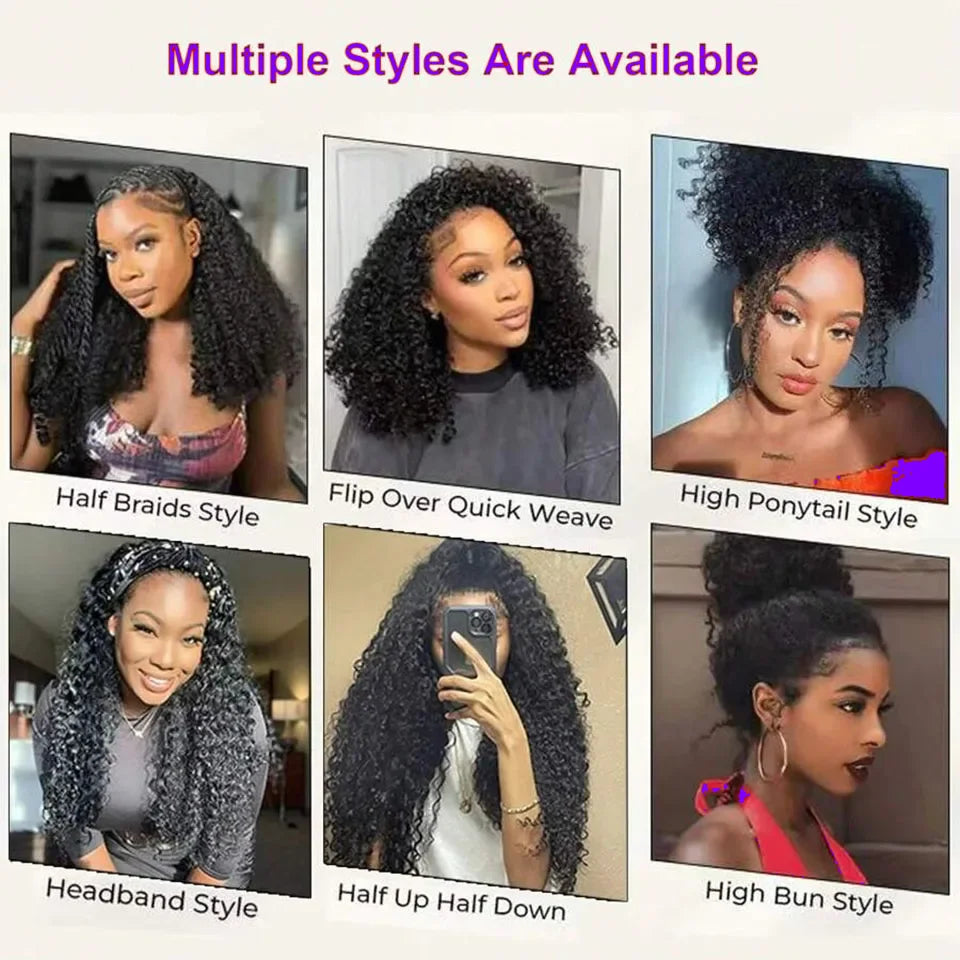 Half Wig Human Hair Jerry Curly Glueless Wigs Human Hair Curly Half Wig Drawstring Seamless Flip Over Half Wigs for Women Invisible Hairline Beginner Friendly Headband Wig