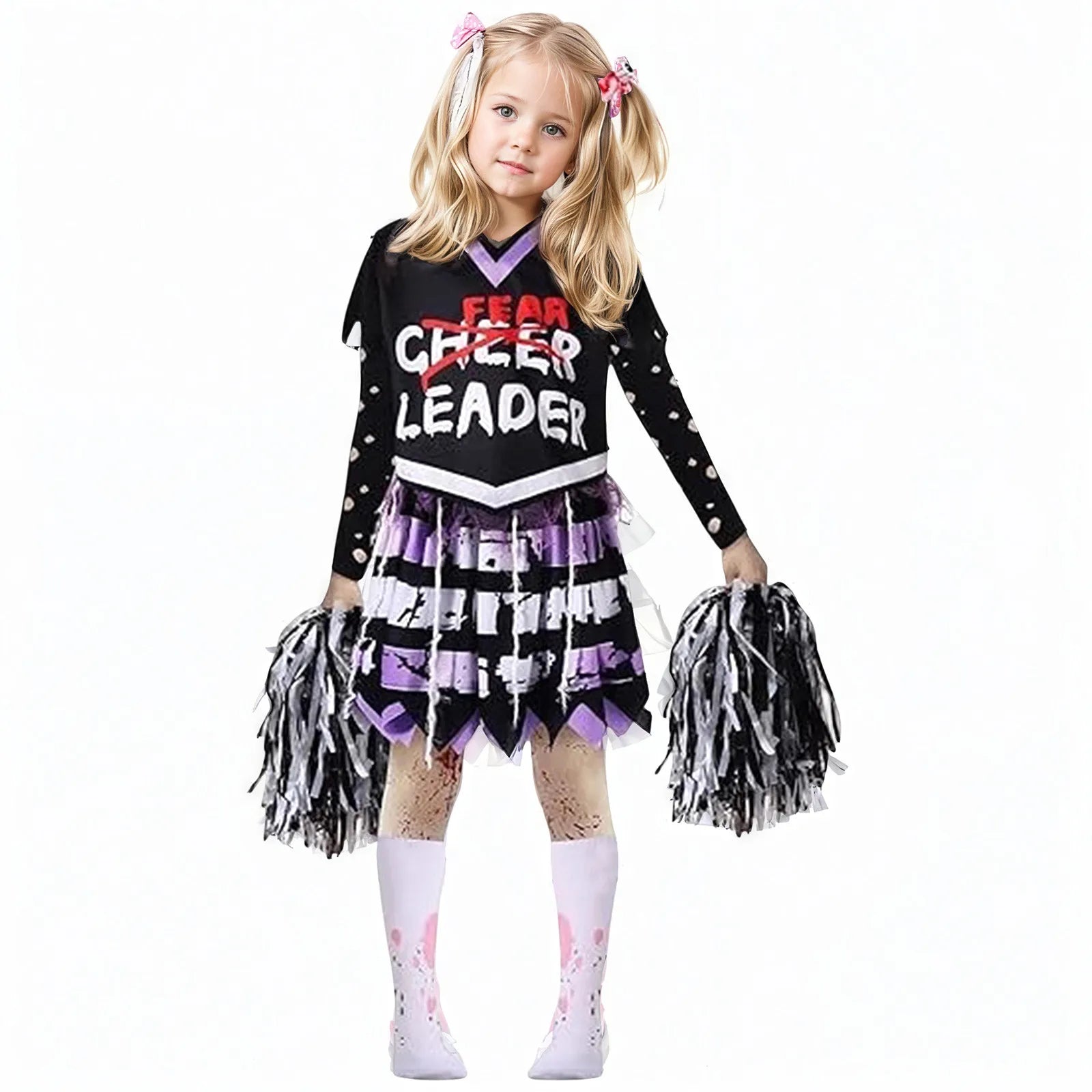 Halloween Theme Cheerleading Dance Costume Bloody Dress Cosplay Costume Girls Horror Zombie Stockings Flower Ball Party