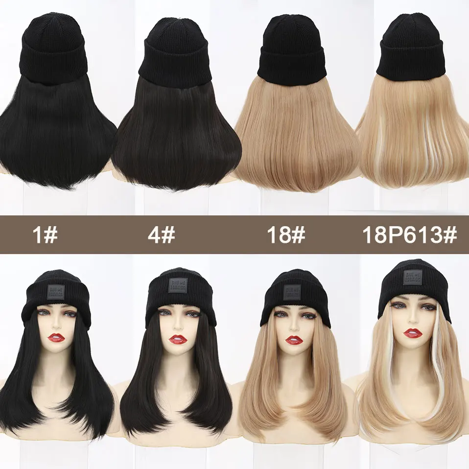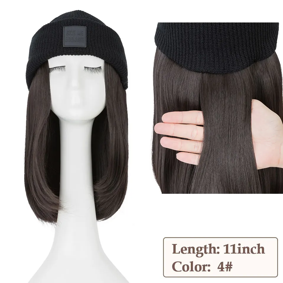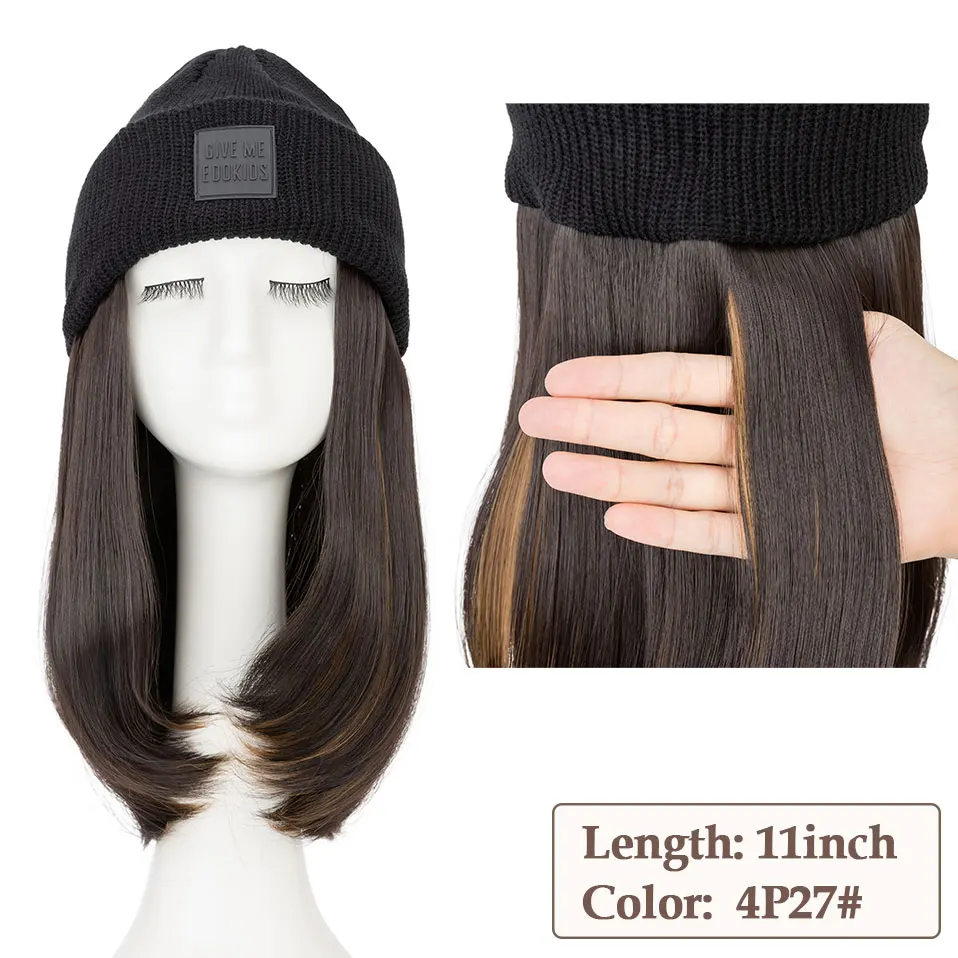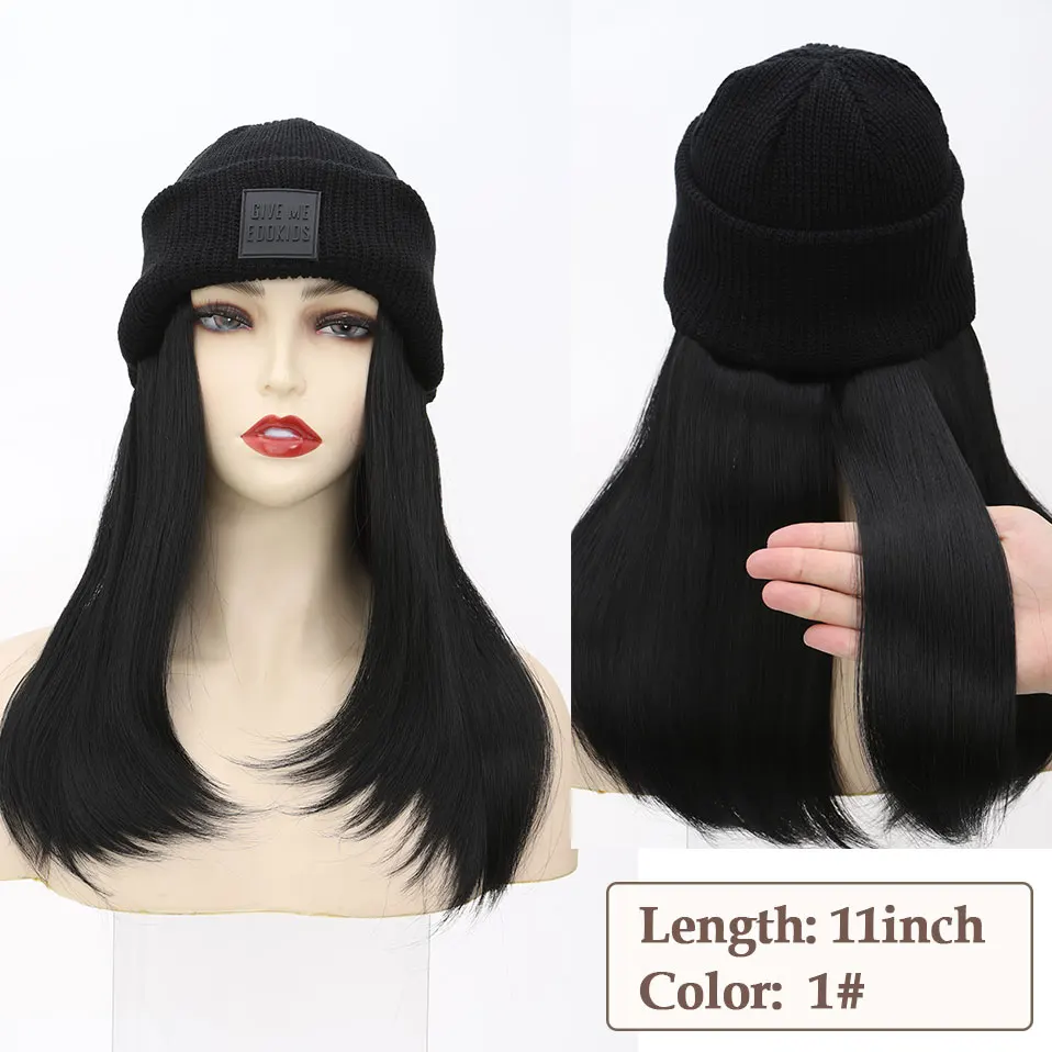 Hat Wig Knitted Beanie Wig Hat Hair Extension Straight Wig Hat Attached 11 Inch Synthetic Hairpiece for Women Girls Winter