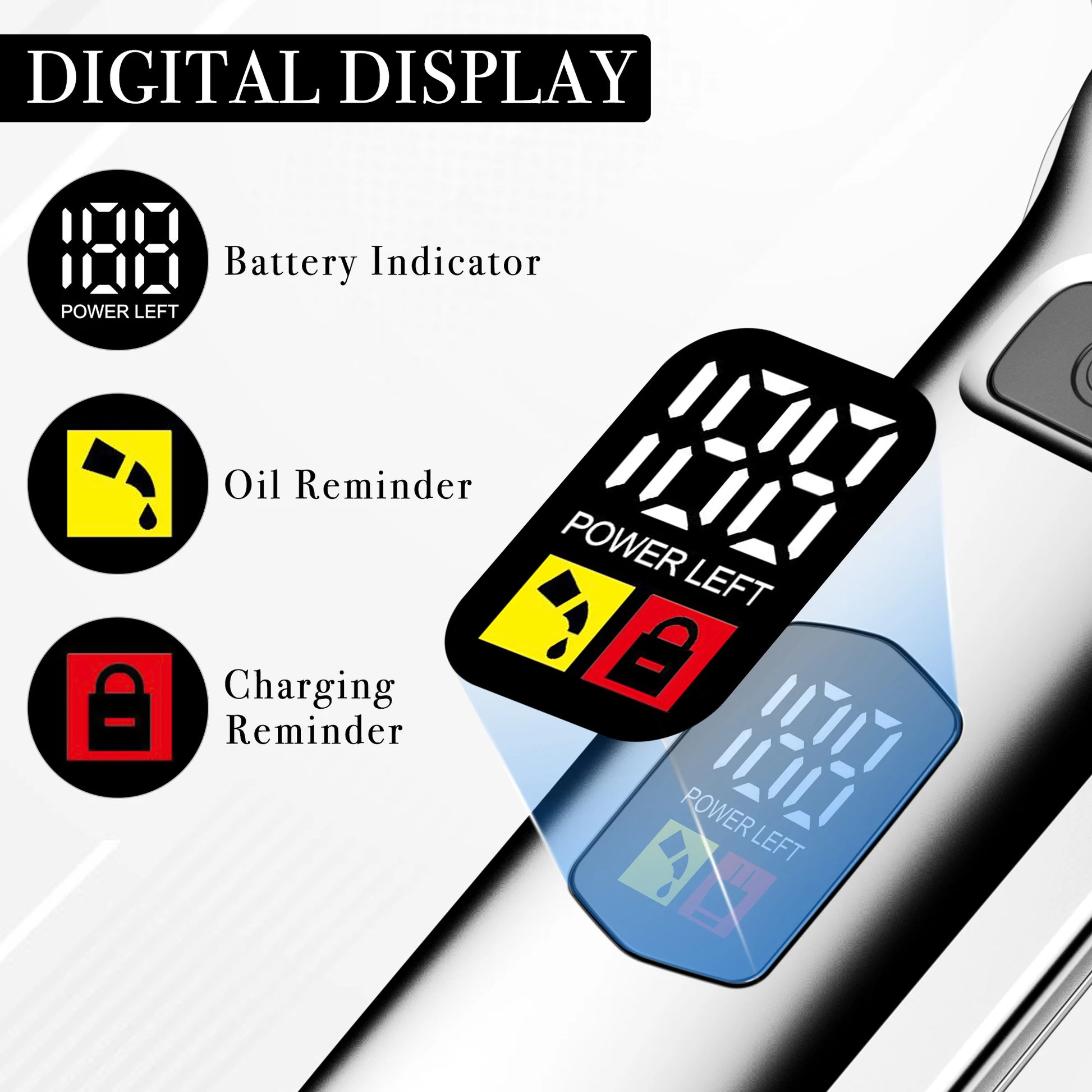 Hatteker Professional Cordless Hair Clipper Kit for Barbers - Powerful Electric Clippers with LCD Display for Men's Haircut